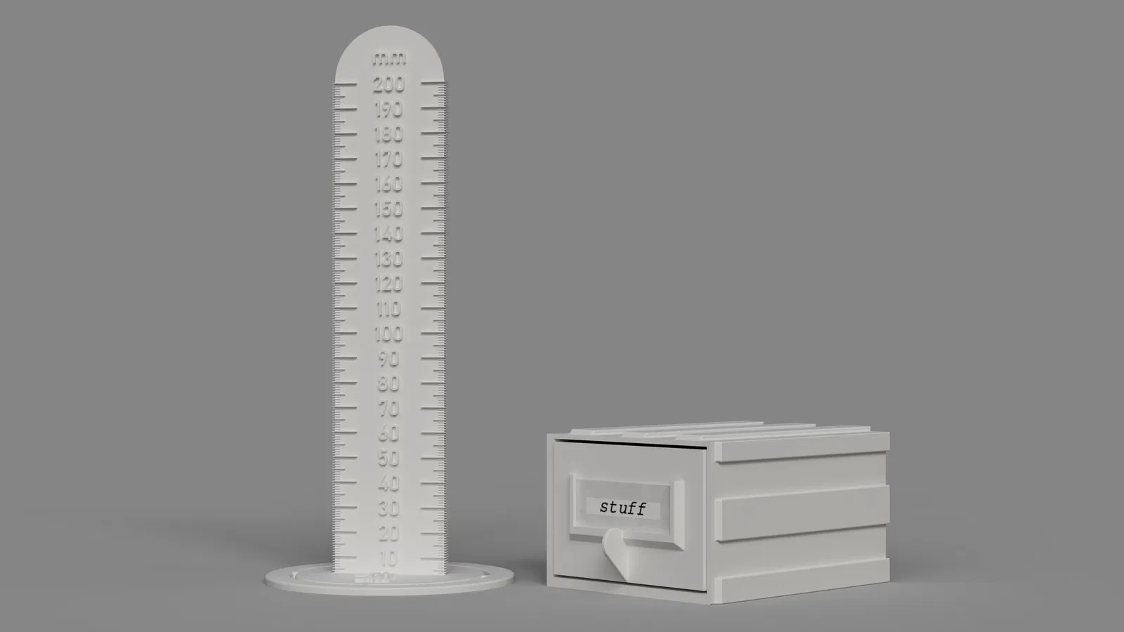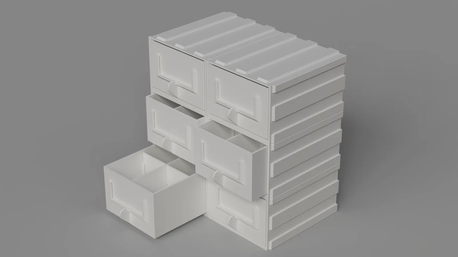 Hệ ngăn kéo Modular Stackable phong cách công nghiệp, tối ưu để in không cần supports. Ray liên kết giúp mở rộng dọc/ngang, có vách ngăn tháo lắp, gắn tường được. File gồm STL, 3MF, OBJ.