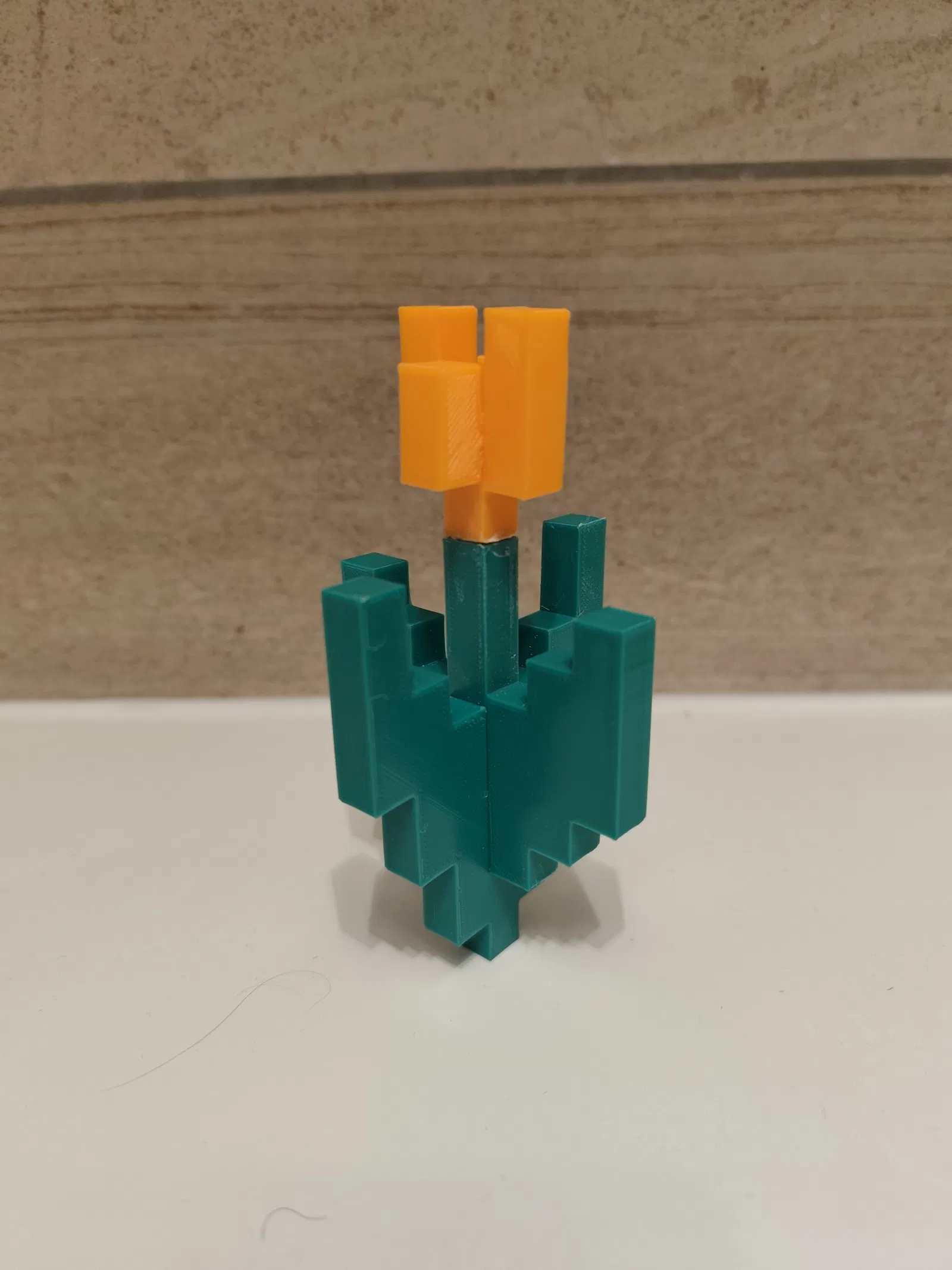 Mẫu tulip trong Minecraft với nhiều lựa chọn kiểu in. Gồm 10 file STL: bạn chỉ cần in bản Full hoặc ghép mẫu 1 và 2. Có phiên bản có lỗ/phần lồi để ráp không cần keo. Tỉ lệ 10mm = 1 pixel.