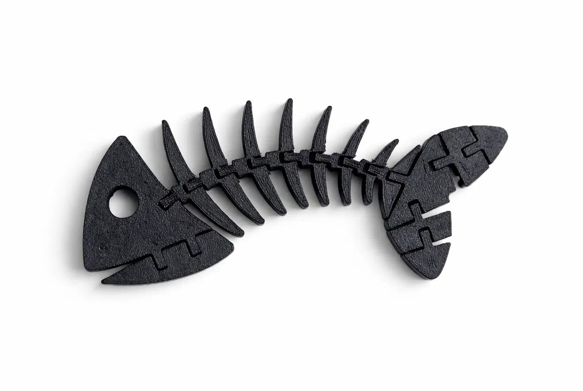 Mẫu Articulated Flexible Fish Bone Skeleton là bộ xương cá dạng khớp nối, print-in-place với các khớp dẻo linh hoạt. In một lần ra một miếng, không cần supports, tối ưu cho FDM; hợp làm fidget, trang trí hay móc khóa.