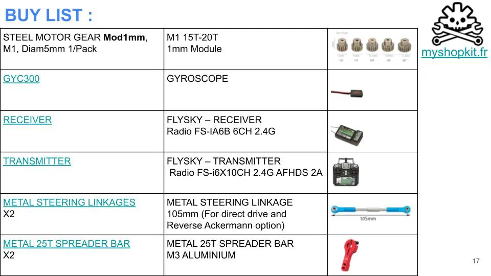 Phần cơ khí khuyến nghị: (kèm mã REF để tìm trên Aliexpress)