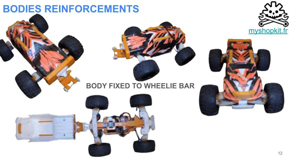 Thiết kế đã được cải tiến, bền hơn rất nhiều so với bản gốc. Dễ sửa, chắc chắn, dạng module (modulable), chỗ pin lớn, tốc độ 100Km/h với 4S.