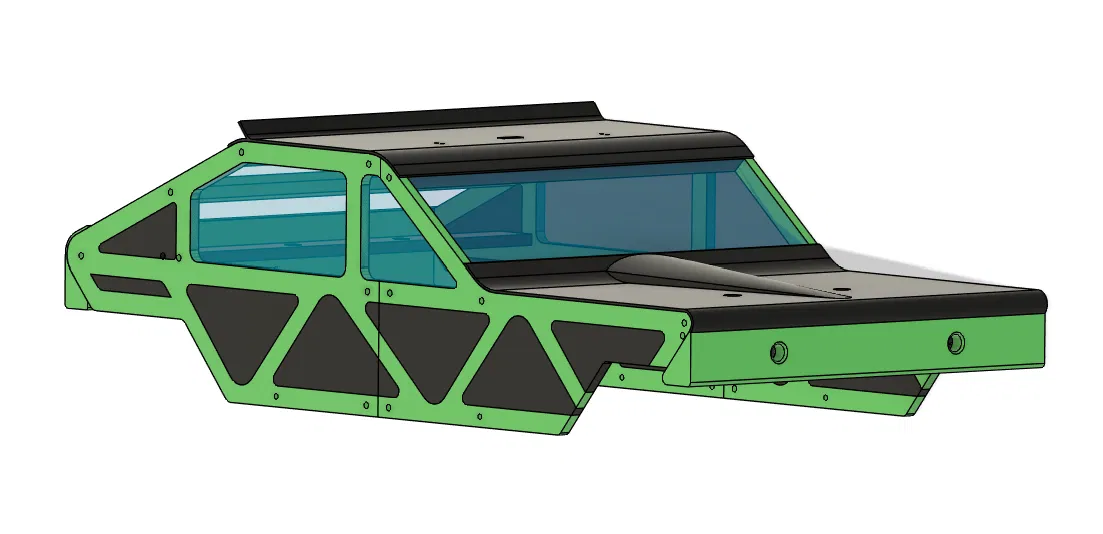 Mẫu truggy RC tỉ lệ 1:8 in 3D dùng linh kiện JLB CHEETAH J3, cấu hình 4WD + 4WS và có central diff. STL đã pre-oriented, dễ in trên Ender 3, truyền động full metal, thiết kế bền, dạng module và khoang pin lớn.