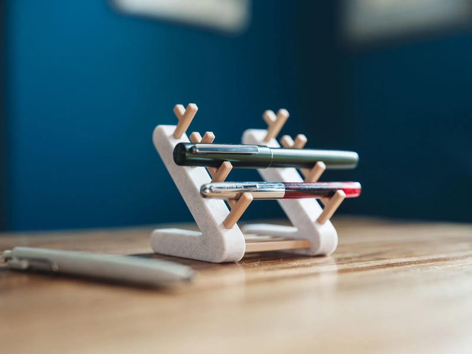Kệ để tối đa 4 cây bút theo phương ngang. Thiết kế ưu tiên cho bút máy (fountain pen). Không cần AMS.
