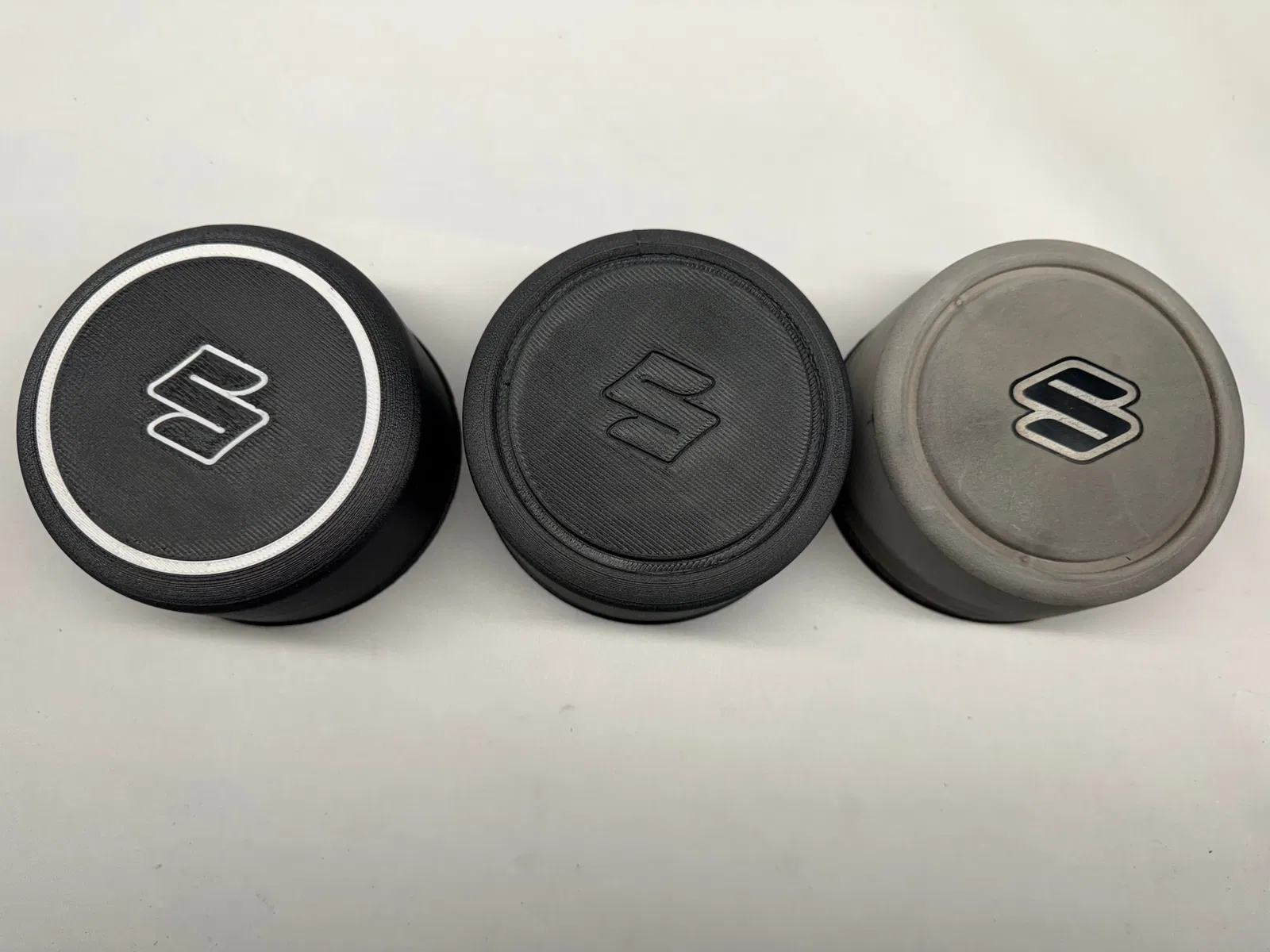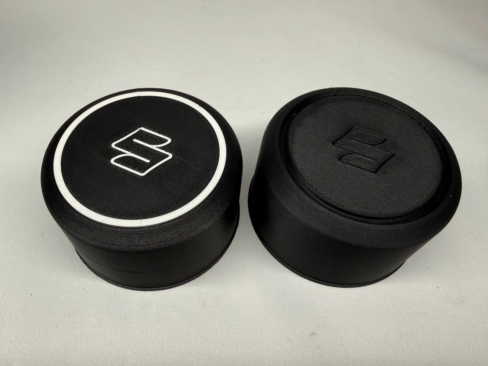 Mẫu nắp chụp moay-ơ bánh sau cho Suzuki Jimny JA22W. Có tùy chọn inlay cho chữ và vòng tròn ngoài để in multicolor. Nên in bằng ASA để chịu nhiệt và UV tốt khi dùng ngoài trời.
