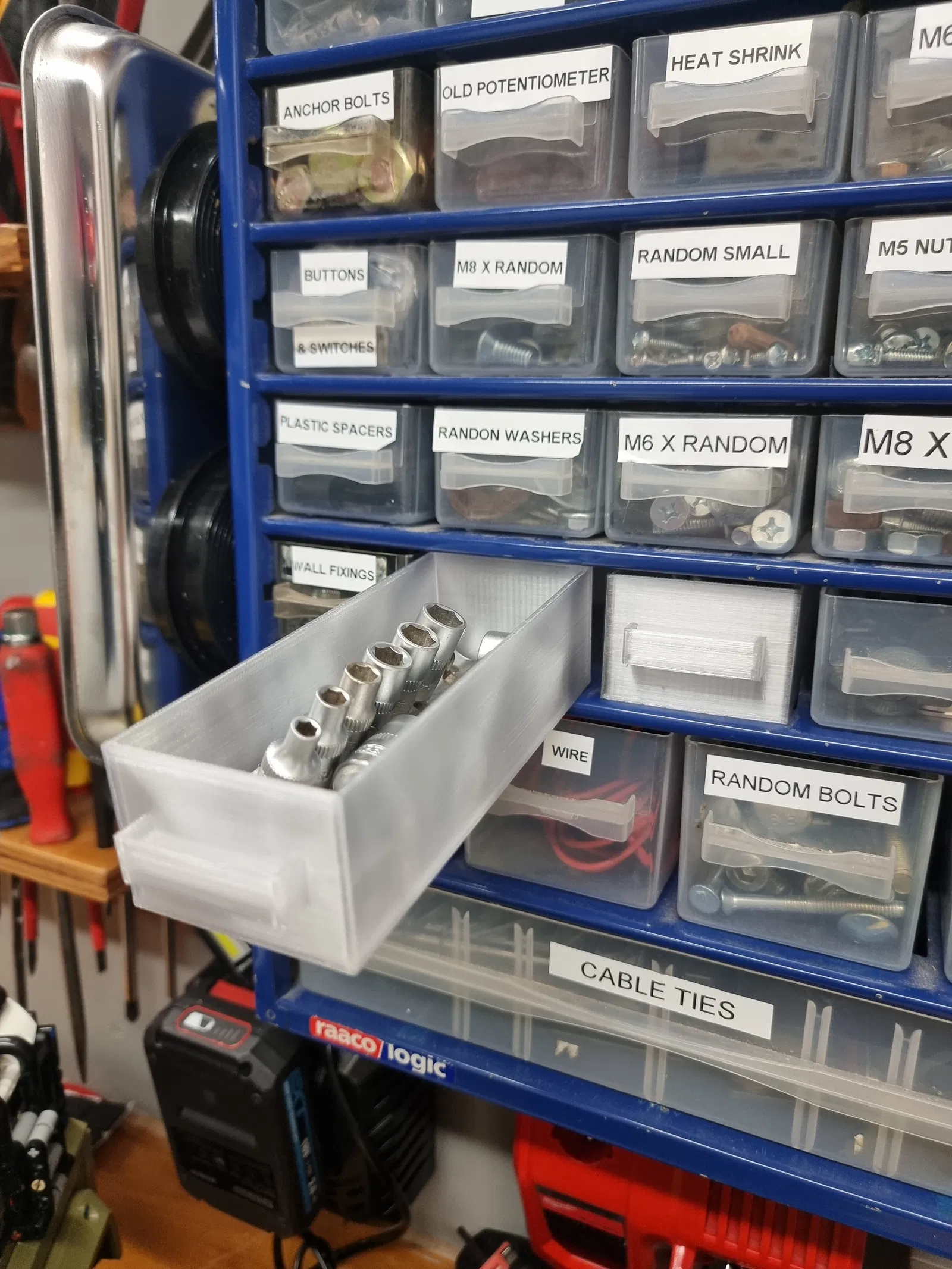 Lưu ý: Khác với ngăn kéo Raaco zin, mẫu này không có rãnh để gắn vách chia bên trong. Mình thiết kế để dùng cá nhân, vì mình không cần chia ô.