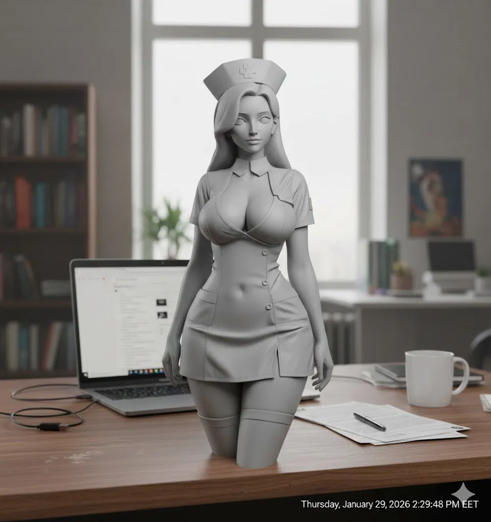 Mẫu 3D cô gái trong đồng phục y tá, phong cách dễ thương và gợi cảm. Phù hợp để trưng bày, làm mô hình sưu tầm hoặc in thử với các thiết lập cơ bản. Hỗ trợ dùng cho file STL khi chuẩn bị in.