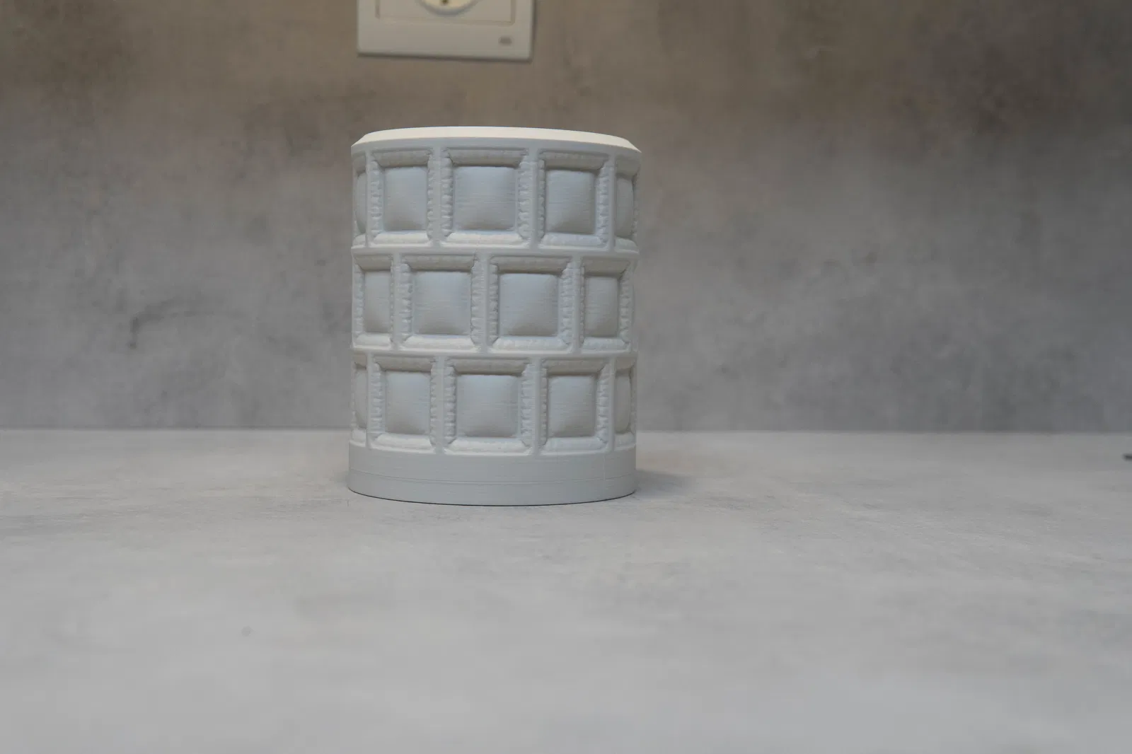 Mẫu Inflated Softform Pencil Vase mang phong cách futuristic với dáng vuông mềm phồng và chi tiết như đường may. Dùng làm ống đựng bút hoặc bình cây mini, tạo điểm nhấn tối giản cho bàn làm việc, kệ và nội thất hiện đại.