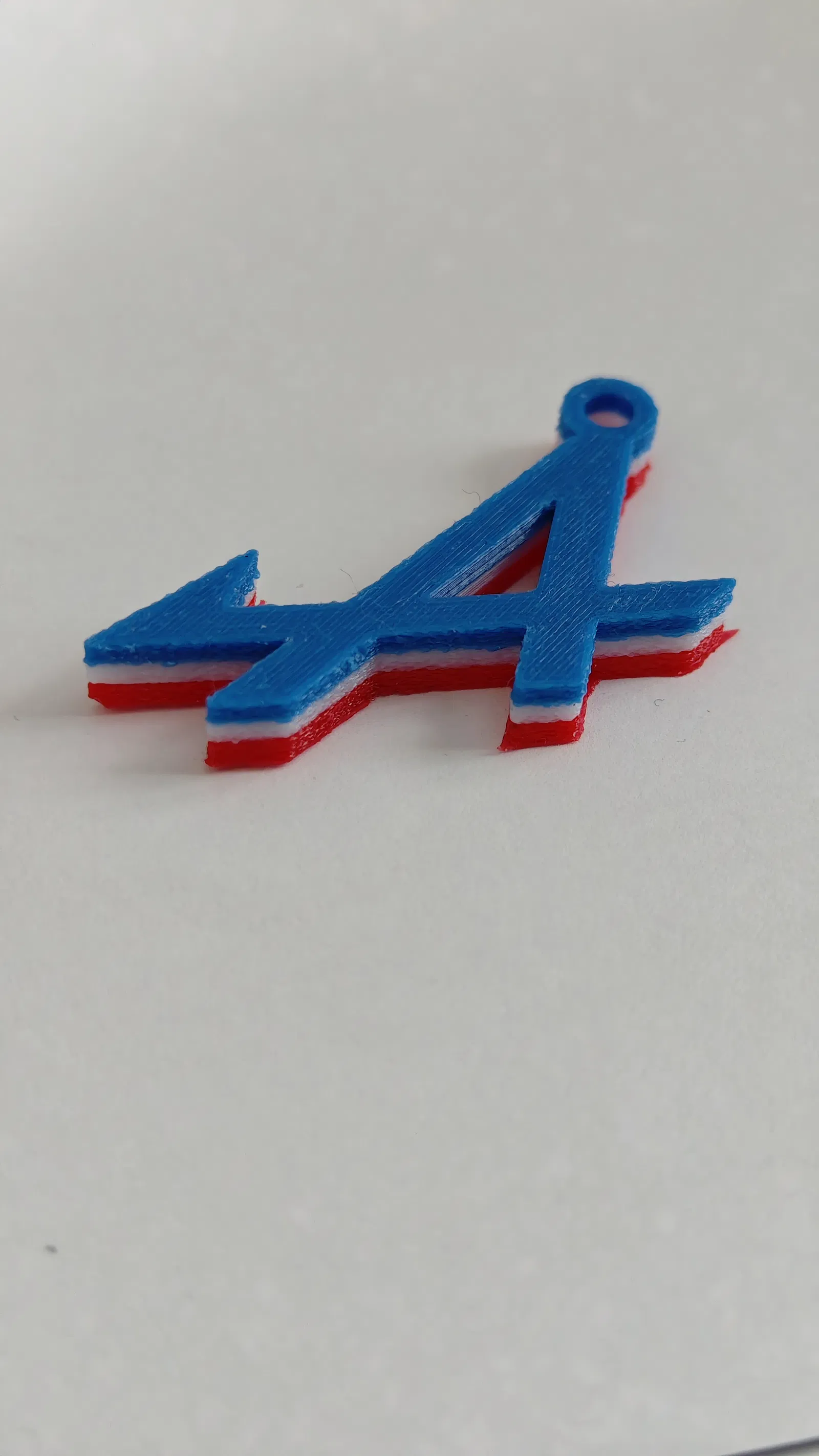 Móc khóa Alpine được làm lại với phối màu xanh-trắng-đỏ, file .3mf. Mình đã thử TPU đỏ bám tốt, nhưng nên tạo raft bằng PETG để dễ gỡ khỏi bed, tránh dùng TPU làm raft gây khó tách.