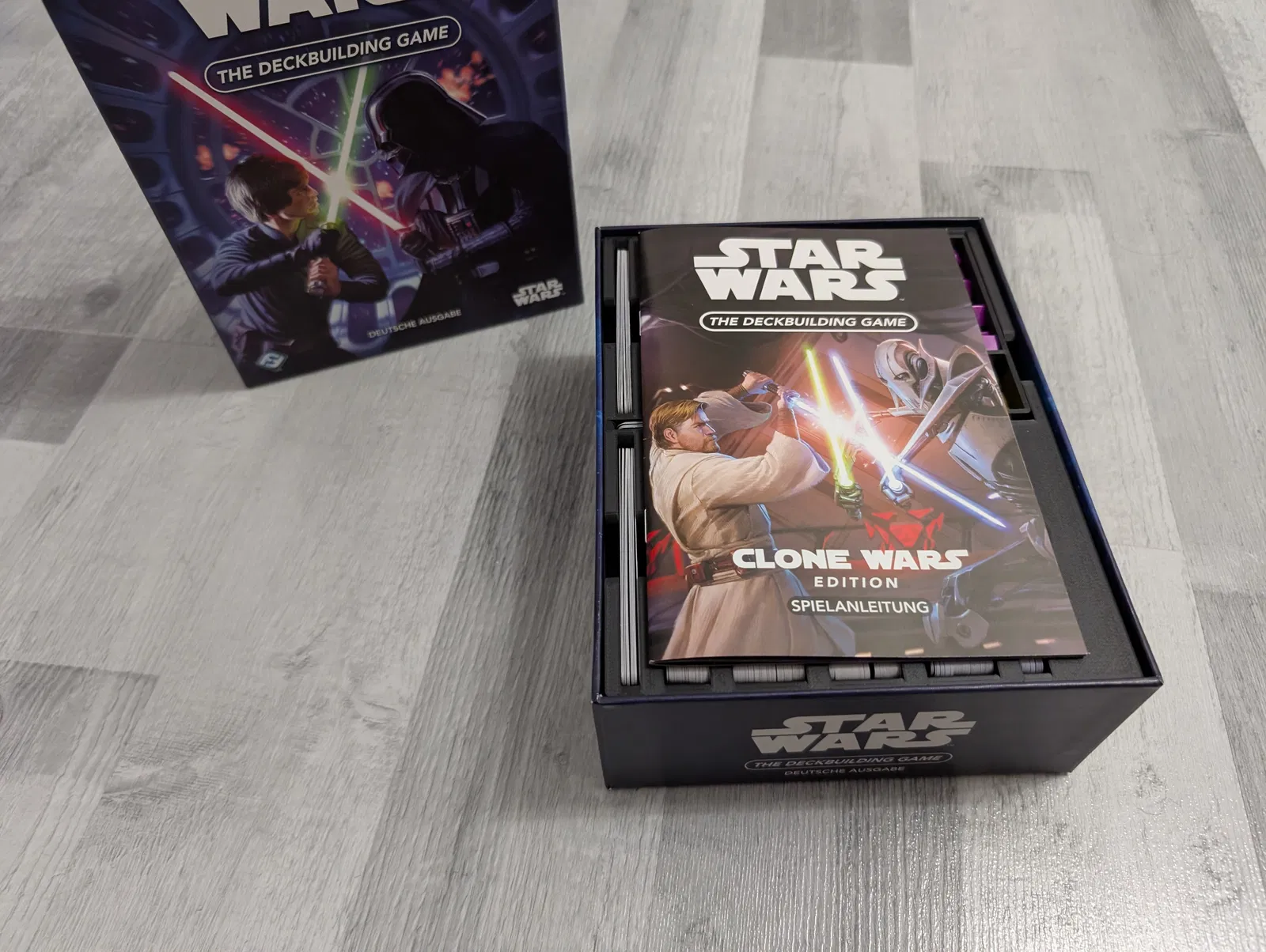 Insert này được thiết kế cho Star Wars: The Deckbuilding Game, bản Clone Wars Edition và gói Mandalorian Faction Pack. Cả ba bộ đều có thể để chung gọn trong insert này.