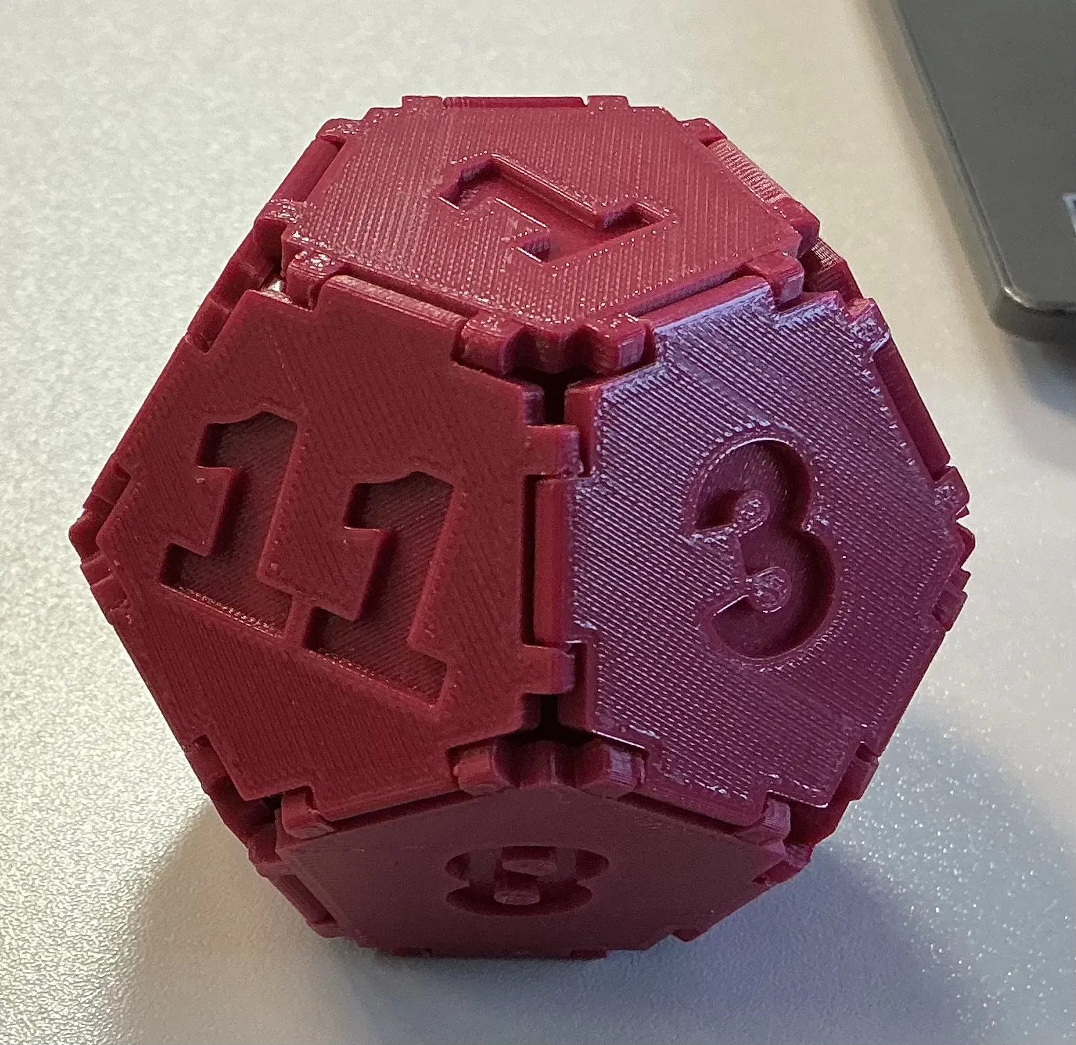 Mẫu này gồm 12 miếng ngũ giác có đánh số, khi ráp lại sẽ tạo thành một khối xúc xắc 12 mặt (D12) chắc chắn. Các miếng được chia theo số lẻ và số chẵn, lắp ghép từng nửa lại với nhau, rồi cuối cùng ghép hai nửa thành một khối hoàn chỉnh.