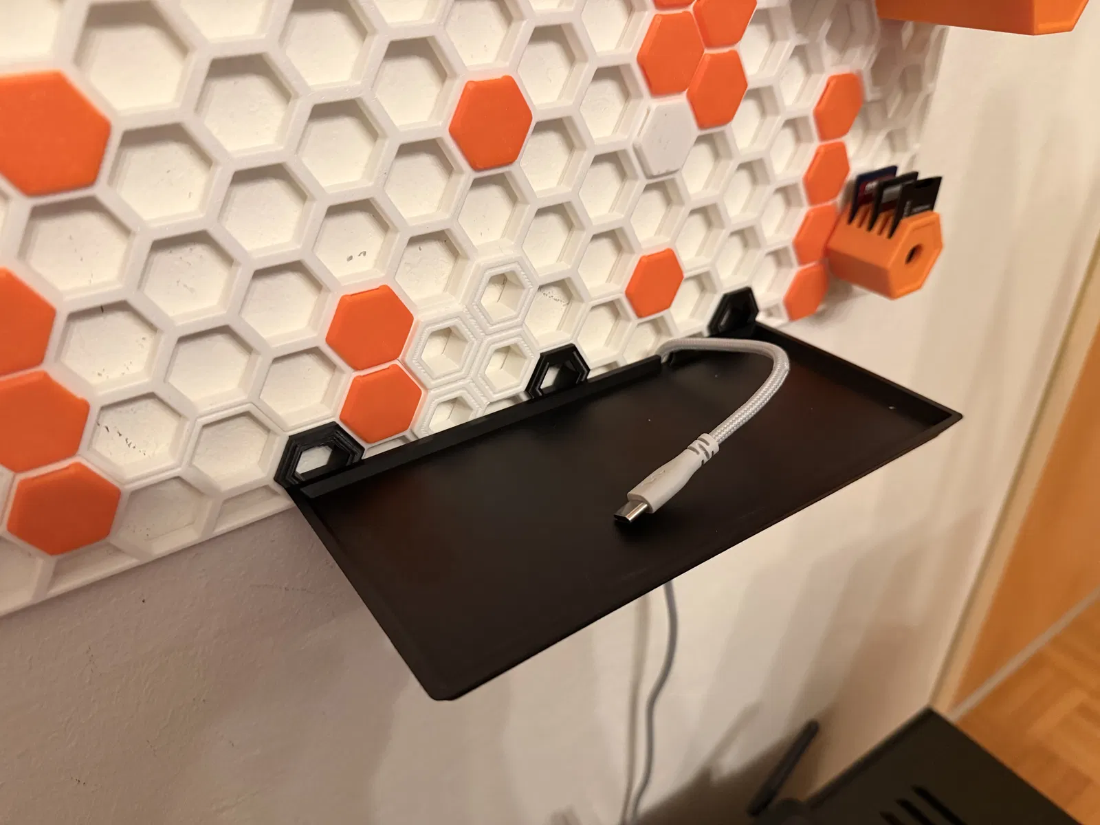 Bản remix từ kệ lớn của Coolbruhs, nhưng giờ thêm các nút gài (nobs) để kệ có thể bấm khớp và “click” đúng vào hệ HSW (Honeycomb Storage Wall).
