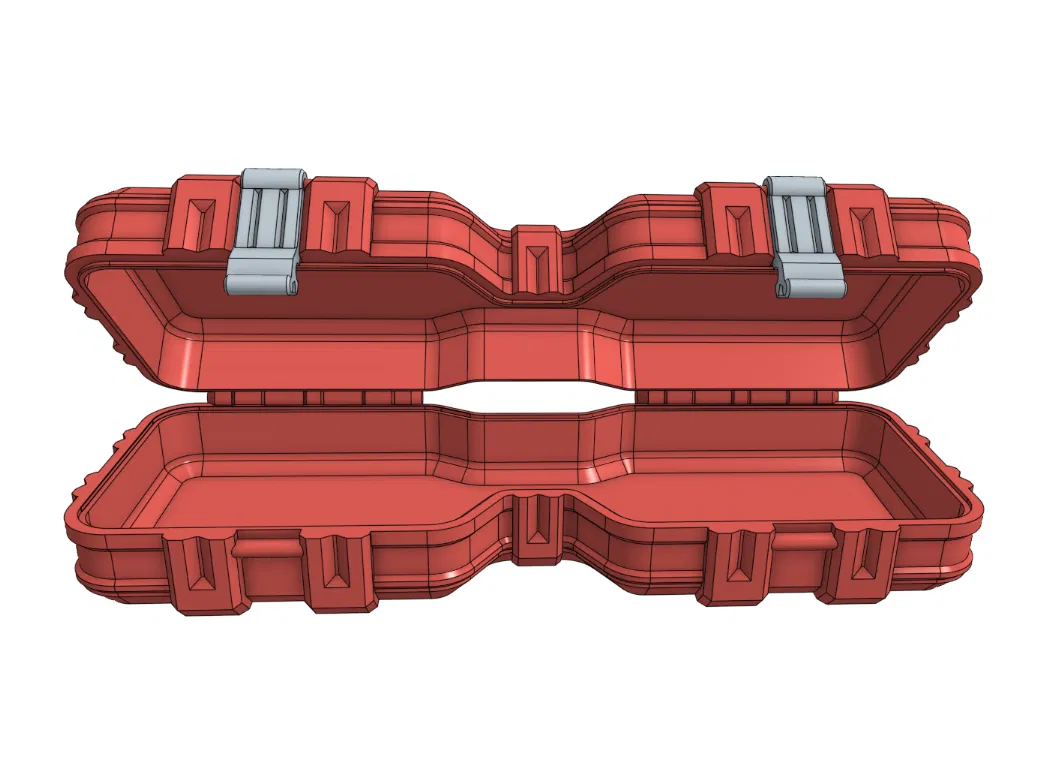 Rugged Glasses Box dạng Print-in-place, in liền khối phần hộp. Khóa in riêng rồi bấm vào nắp. Kích thước có trong hình; nhớ đo kính trước và scale đồng đều các phần nếu cần.