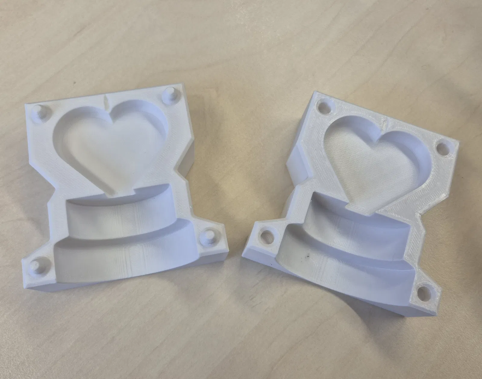 Bộ khuôn giúp bạn tự làm nến tealight hình trái tim, hợp làm quà Valentine kiểu handmade. Hai mảnh khớp sẵn, không cần ốc vít hay dụng cụ. Có rãnh kẹp dây thun và gài bấc để nến lên form đẹp.