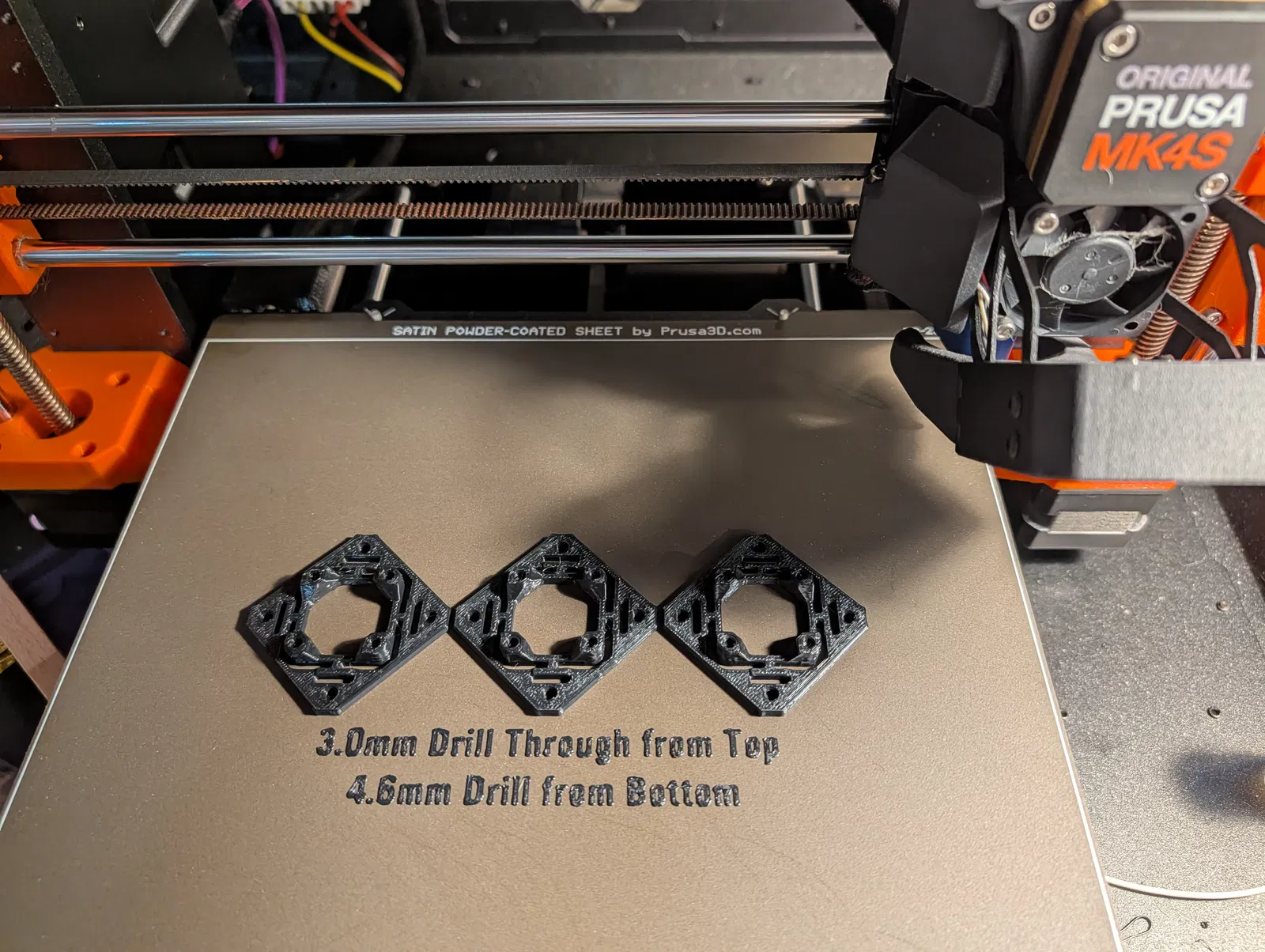 Tiếp theo mình thêm chữ lên print bed để nhắc bản thân nên dùng mũi khoan cỡ nào để gỡ phần sacrificial bridging che lỗ. Mình làm toàn bộ trong PrusaSlicer, nên bản remix này chỉ là một file dự án PrusaSlicer. Cứ thoải mái “mổ xẻ” kỹ thuật này để áp dụng cho các model khác bạn tải về (hoặc tự thiết kế).