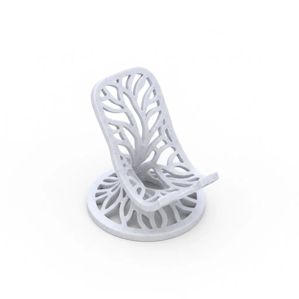 Giá đỡ điện thoại dạng điêu khắc lấy cảm hứng từ gân lá và đường cong kiến trúc, vừa nhẹ vừa chắc, cho góc nhìn thoải mái. Lattice đón sáng đẹp, hợp để bàn làm việc, đầu giường hay góc gaming.