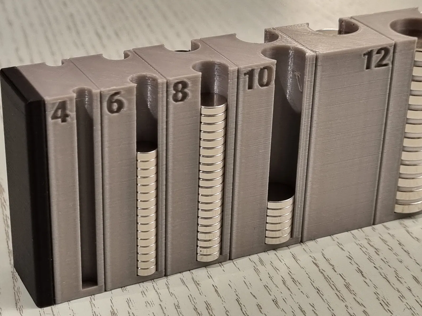 Bộ organizer nam châm dạng modular giúp cất nam châm gọn gàng, chỉ cần in đúng module theo size bạn có. Các module ghép chặt với nhau, có end plate hoàn thiện, nhiều kích thước và có bản loose-fit để dễ lắp.