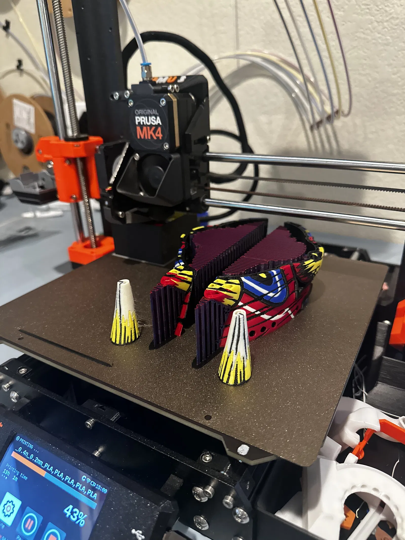 Đây là nắp (cover) loveboard cho Prusa MK4. Mình có MMU và nhận ra là mấy phần khác nhìn nhiều màu sắc rồi, còn cụm printhead thì cần “lên màu” thêm chút nữa!
