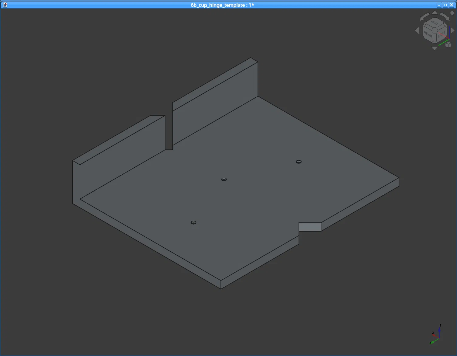 Template/jig đơn giản để canh vị trí lỗ cup và lỗ vít khi lắp bản lề tủ kiểu Euro Blum cup. Có 2 biến thể: đánh dấu tâm lỗ cup hoặc canh theo mép ngoài. Kích thước thân theo inch, phần bản lề theo metric.