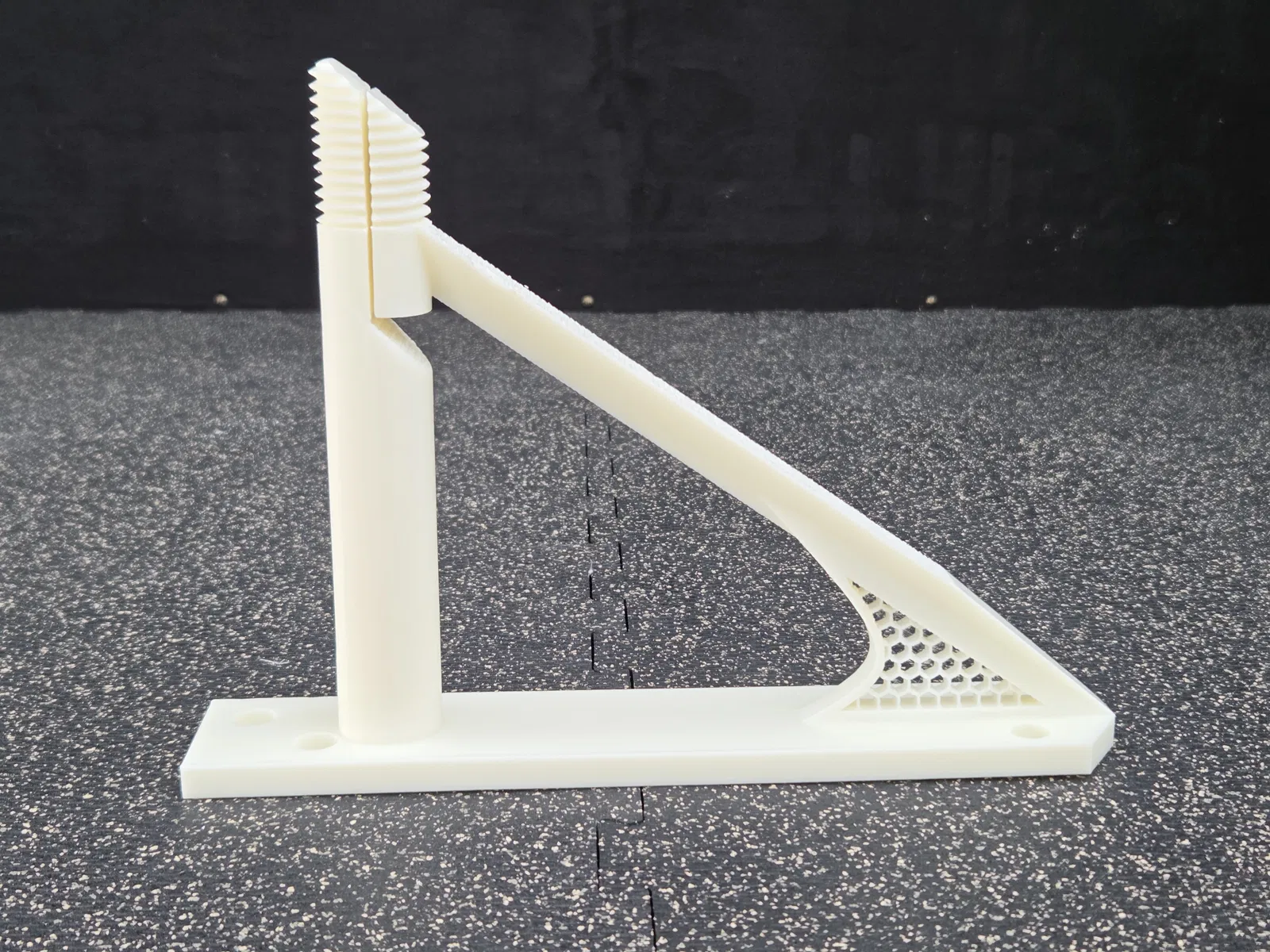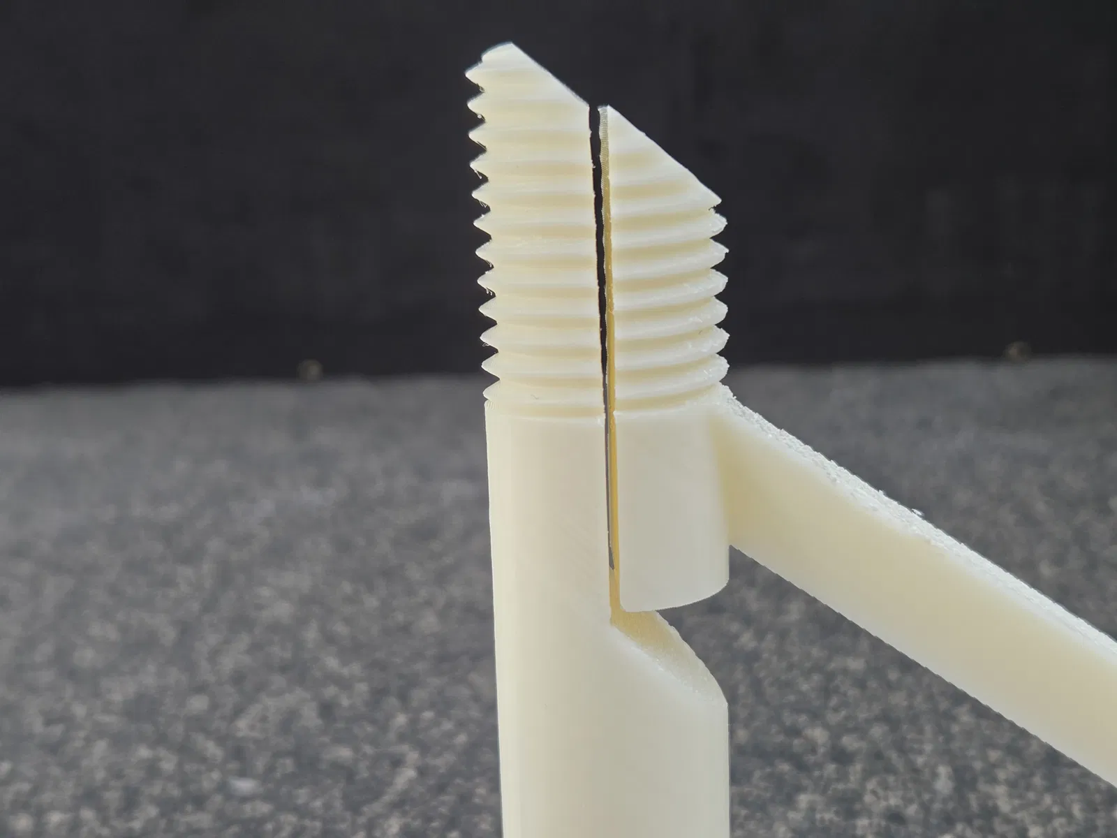 Material: PETG tối thiểu. Mình dùng ABS để cân bằng độ bền và chi phí. Lưu ý nếu dùng ABS: co rút sẽ làm ê-cu (nut) khá sít, nhưng vẫn lắp được. Mình rất khuyên không dùng PLA. Mình khá chắc thiết kế đủ cứng để chịu được nếu in PLA, nhưng PLA bị creep. Tụi mình ghét PLA