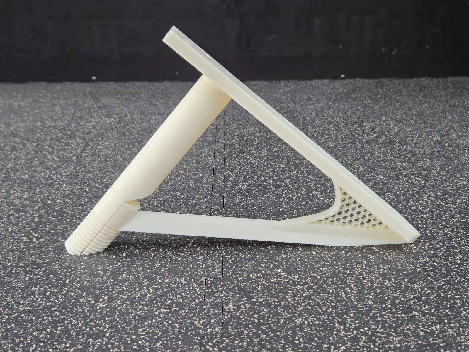 Mình ước trụ dài hơn để hợp với võng rộng hơn, nhưng hiện tại nó vừa khít khổ build plate của Core One. Thật ra lúc đầu còn không vừa, cho tới khi mình chamfer (sao từ này không thành động từ nhỉ) các góc ở đáy của backplate.