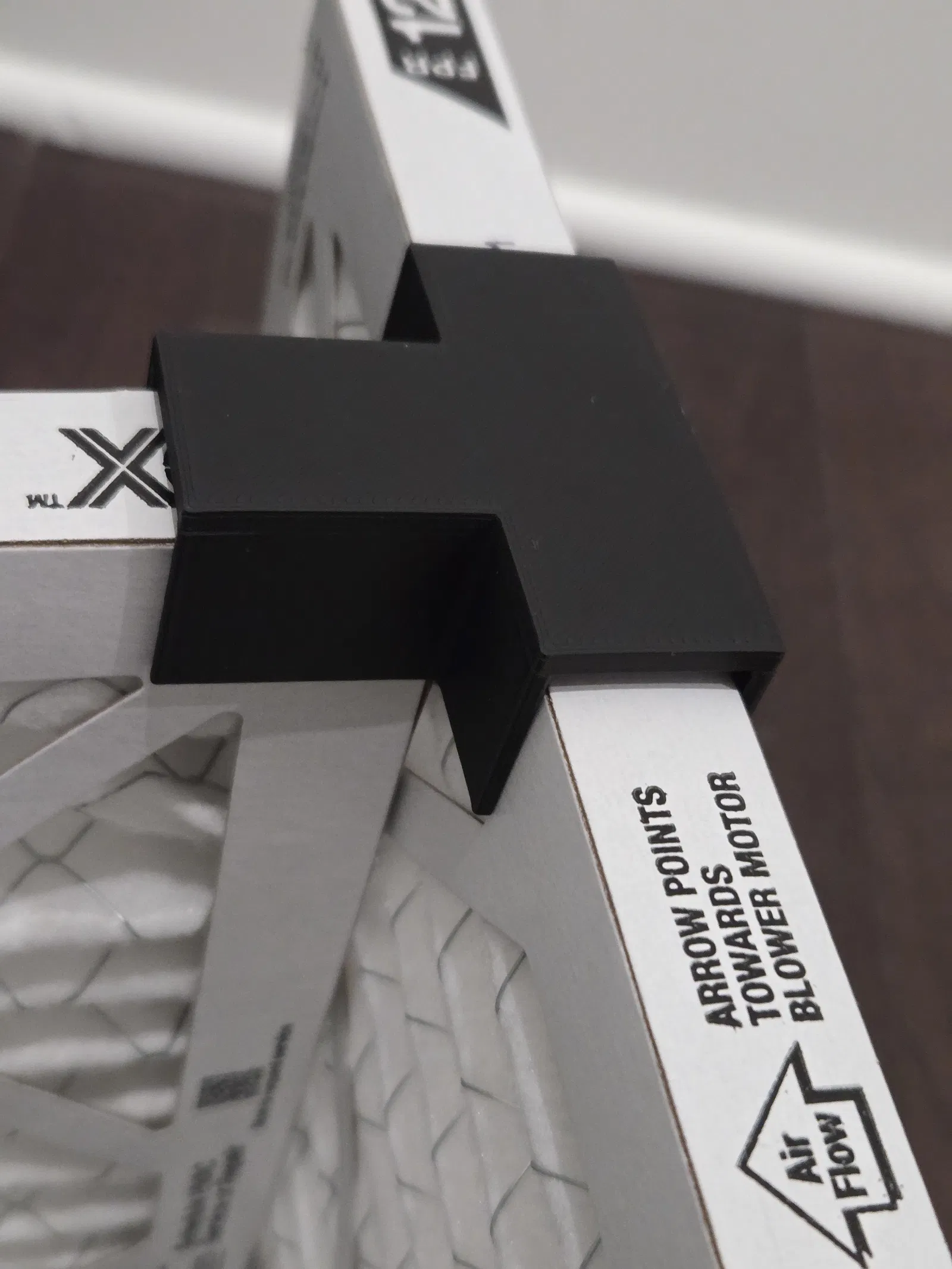 Bracket đơn giản để trùm lên các tấm lọc gió HVAC dày 1" nhằm ráp kiểu “Corsi–Rosenthal Box” (máy lọc không khí DIY). In 4–8 cái cho các góc, dùng PLA là ổn.