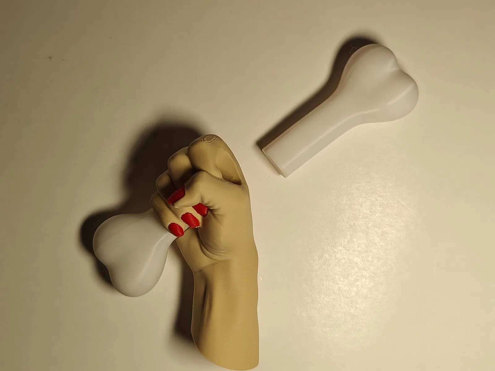 Mẫu décor Valentine kiểu “lầy” với bàn tay nữ sơn móng nắm một “khúc xương” trơn láng, gắn trên đế có dòng chữ Love You To The Bone. In nhiều phần, dễ đổi màu, lắp ráp đơn giản và scale linh hoạt.
