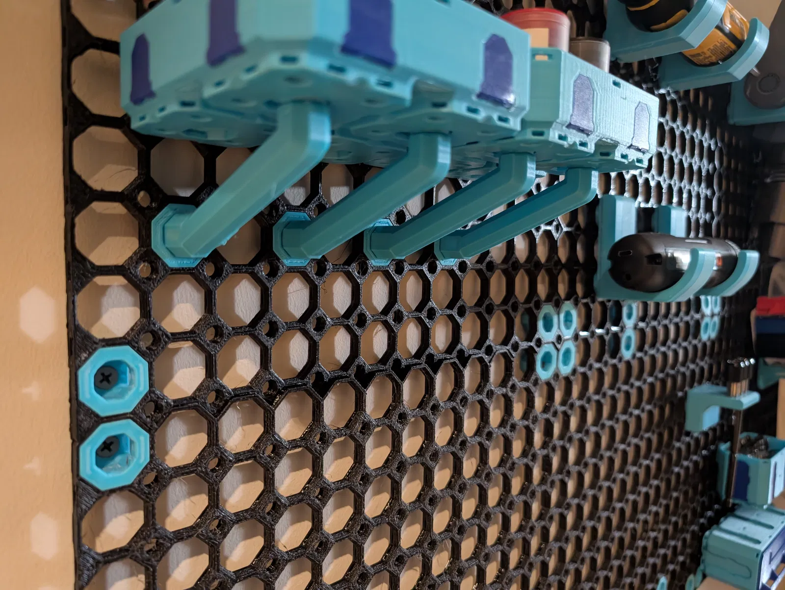 Đây là các cấu trúc support cho Multibin loại rộng 2 ô, dựa trên Multiboard của KeepMaking. Việc gắn một insert vào Multibin để làm kệ rất tiện trong nhiều trường hợp, nhưng nếu chỉ bắt cái bin ở phía sau thì nó sẽ khá lỏng lẻo, dễ rung lắc. Mấy support này giúp gia cố điểm kết nối cho chắc hơn. Bạn sẽ cần một snap thường https://thangs.com/designer/Multiboard/3d-model/Multiboard%20Snap-1311031, một Locking Bolt https://thangs.com/designer/Multiboard/3d-model/Locking%2520Bolt%2520%2528Folded%2529-1310061, và một Multipoint ren nhỏ. Cách làm phổ biến hơn là dùng shelf và bracket, nhưng sẽ tốn nhiều chi tiết, và với nhu cầu của mình thì nó chắc quá mức cần thiết.