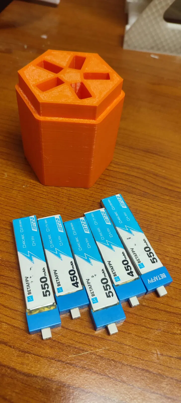 Mẫu hộp đựng pin dạng lục giác, thiết kế để chứa pin drone kích cỡ 5,7,8 với dung lượng 450mAh và 550mAh. Giúp cất giữ pin gọn gàng, bảo vệ pin khi mang theo hoặc lưu trữ.