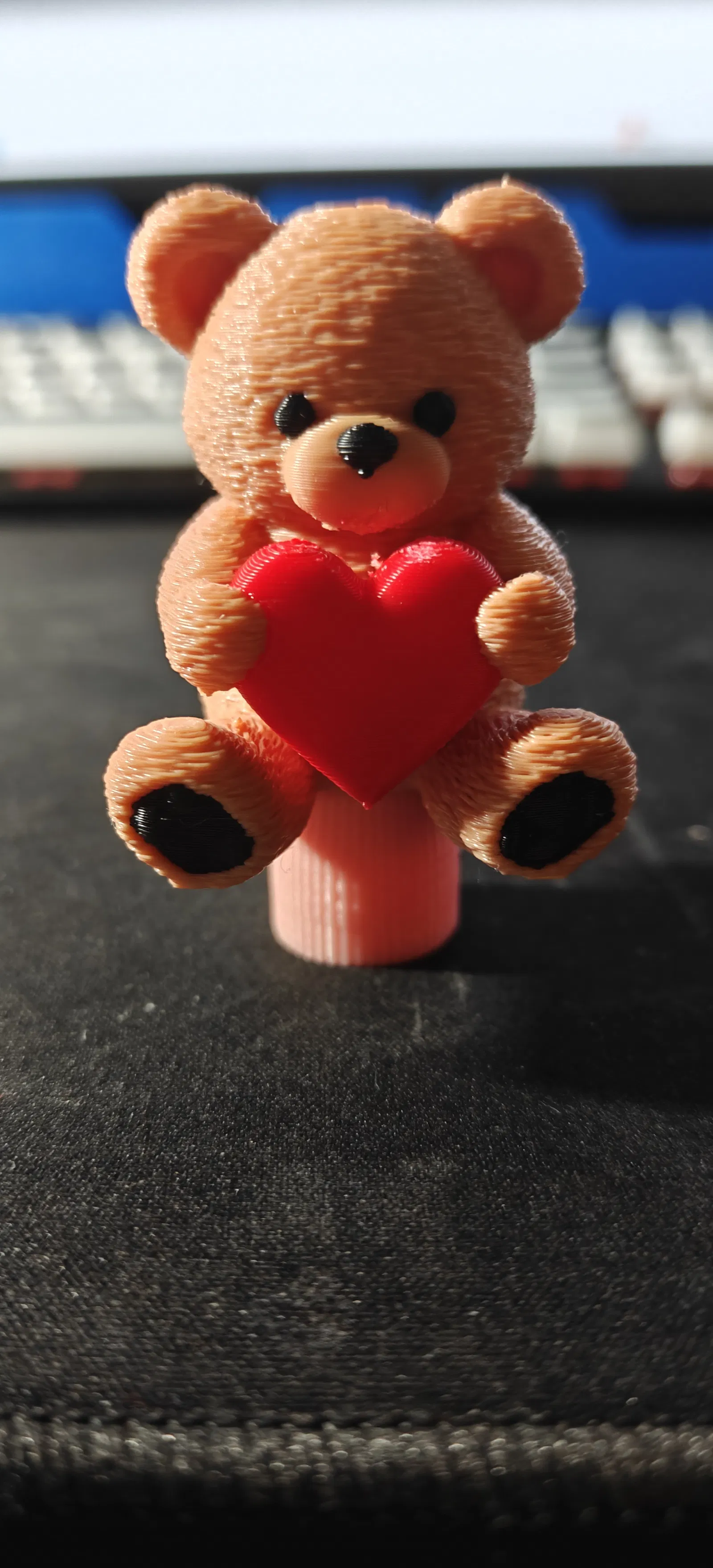 Mẫu in 3D “Valentines Day Teddy Bear Toothpaste Cap Dispenser” – dụng cụ nhả nắp kem đánh răng hình gấu Teddy dễ thương, hợp trang trí mùa Valentine với chi tiết trái tim và phong cách đáng yêu.