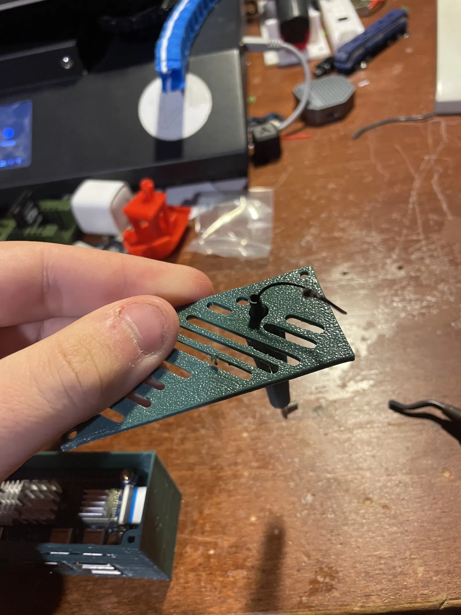 Thiết kế nắp gốc khiến anten bị lòi ra lỏng lẻo, mình muốn anten nằm gọn bên trong nên đã chỉnh lại để bọc kín hoàn toàn. Mấy gân tăng cứng (fins) được thêm vào để chịu lực tốt hơn vì phần này cần in theo phương thẳng đứng.