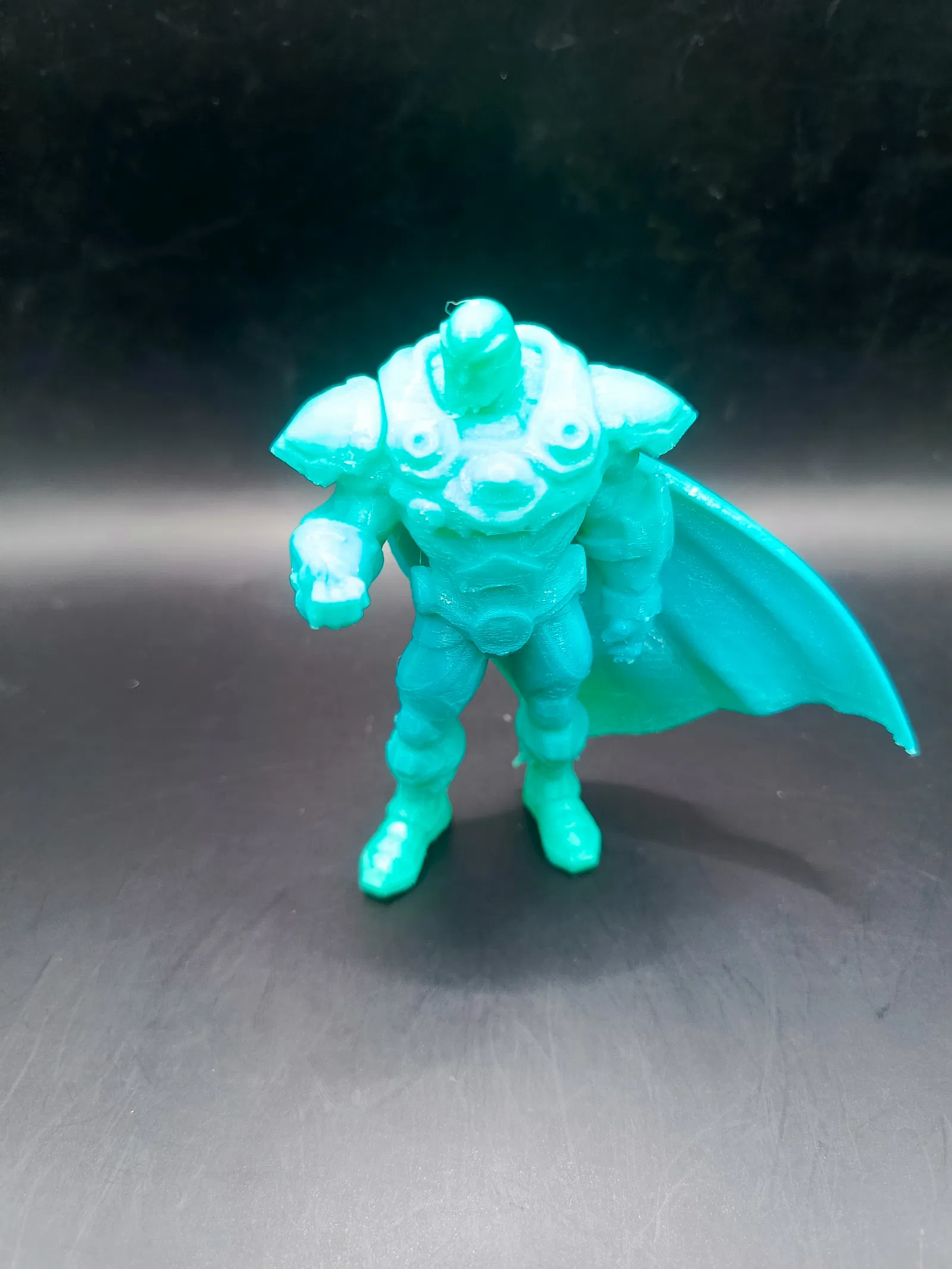 Do có nhiều phần overhang (tay, cằm, và đặc biệt là áo choàng), bắt buộc phải dùng supports.