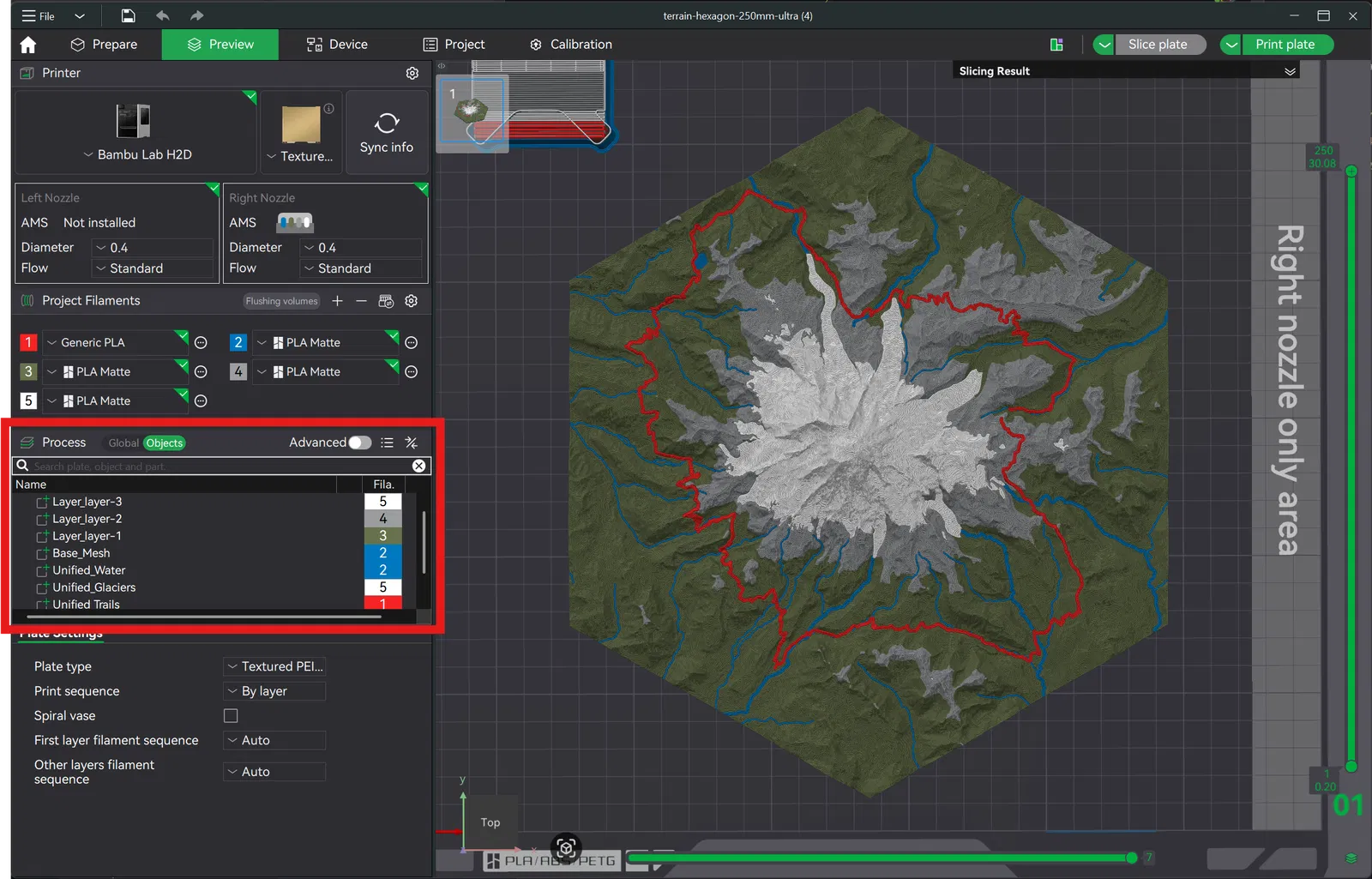 Cắt mô hình theo chiều ngang: để tạo các "lớp độ cao" (Multicolor Printing) Global Data: Công cụ sẽ lấy dữ liệu địa hình độ phân giải cao