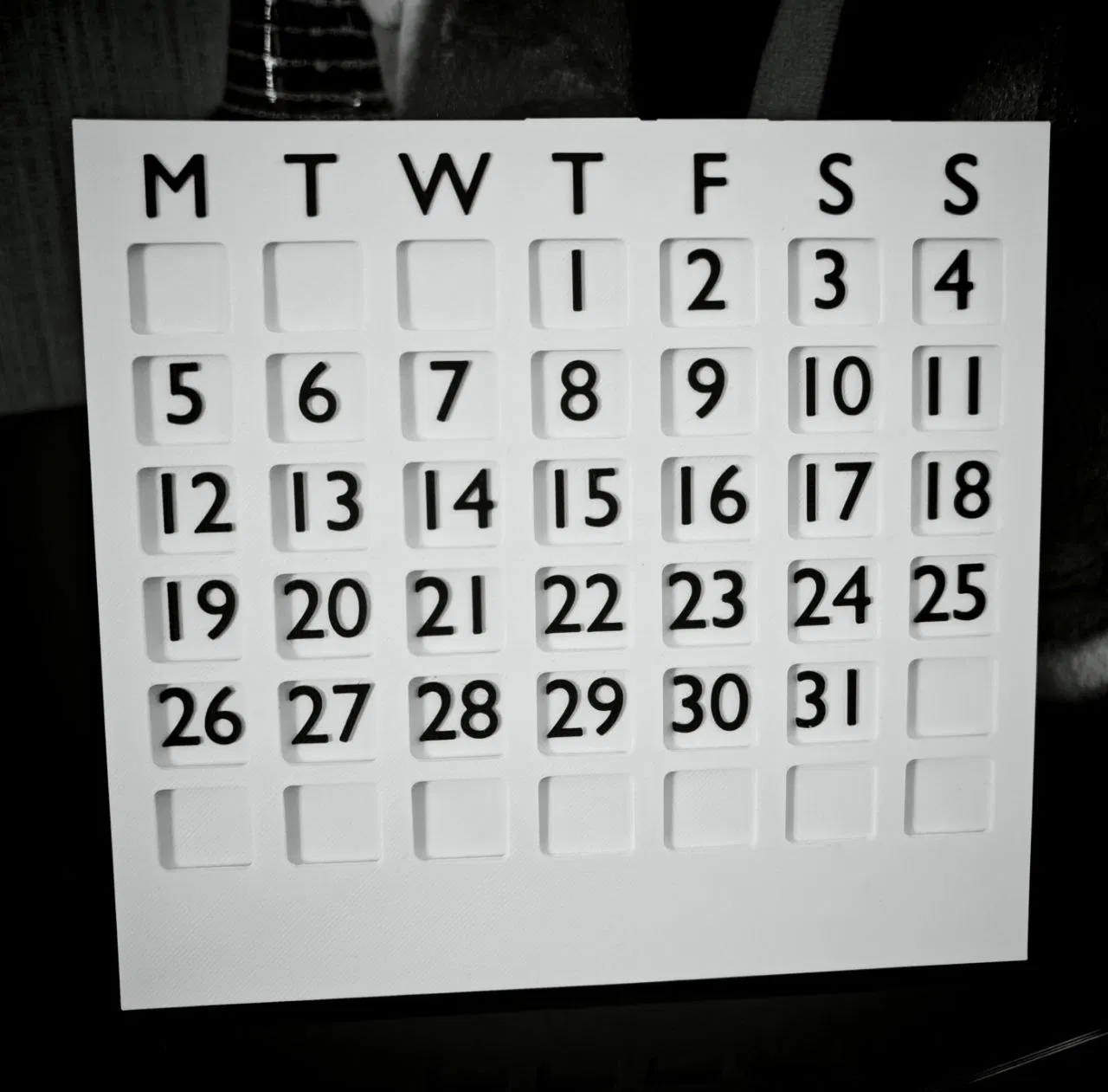Bản remix này chỉ sửa lại face plate, còn các chi tiết khác giữ nguyên như bản gốc. Phù hợp cho người muốn lịch bắt đầu từ thứ Hai (monday-first), vẫn giữ chức năng tự căn chỉnh độ cao như thiết kế ban đầu.