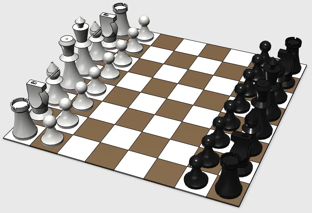 Bộ quân cờ vua cơ bản (không kèm bàn cờ). In bằng nhựa tùy chọn, khuyến nghị infill 100% để nặng tay hơn. Thiết lập tham khảo: nozzle 0.4, layer height 0.15mm; nên dùng supports cho các phần overhang.