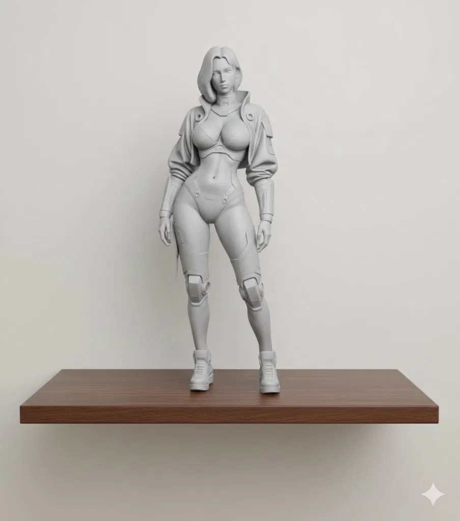 Mẫu 3D “cô gái cyberpunk sexy” với phong cách tương lai, đậm chất cyberpunk và quyến rũ. Phù hợp để sưu tầm, trang trí hoặc in 3D làm mô hình trưng bày theo sở thích.