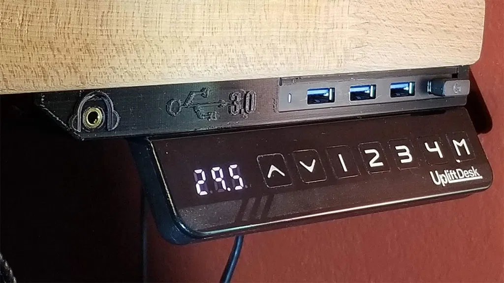 Đây là một bản phối lại của bộ mở rộng jack âm thanh của tôi ( headphone-audio-jack-extender-under-desk-or-wall-m), nhưng tôi đã thêm một trung tâm USB 3.0 vào nó. Toàn bộ điều này gắn trên bộ điều khiển cho bàn nâng cao của tôi với đỉnh gỗ rắn IKEA Gerton, nhưng nó cũng có thể gắn được mà không cần bộ điều khiển. Tuy nhiên, tôi đã thêm một khởi động cáp rắn chưa được kiểm tra có thể được in bằng PLA hoặc PETG (Audio_Extension-1H-CABLE-SR-PLA-A.STL và Audio_Extension-1H-CABLE-SR-PLA-B.STL). Nếu bạn in khởi động cáp rắn, vui lòng cung cấp một số phản hồi. Là một trung tâm USB 3.0 Ultra Slim là một trung tâm SLIM