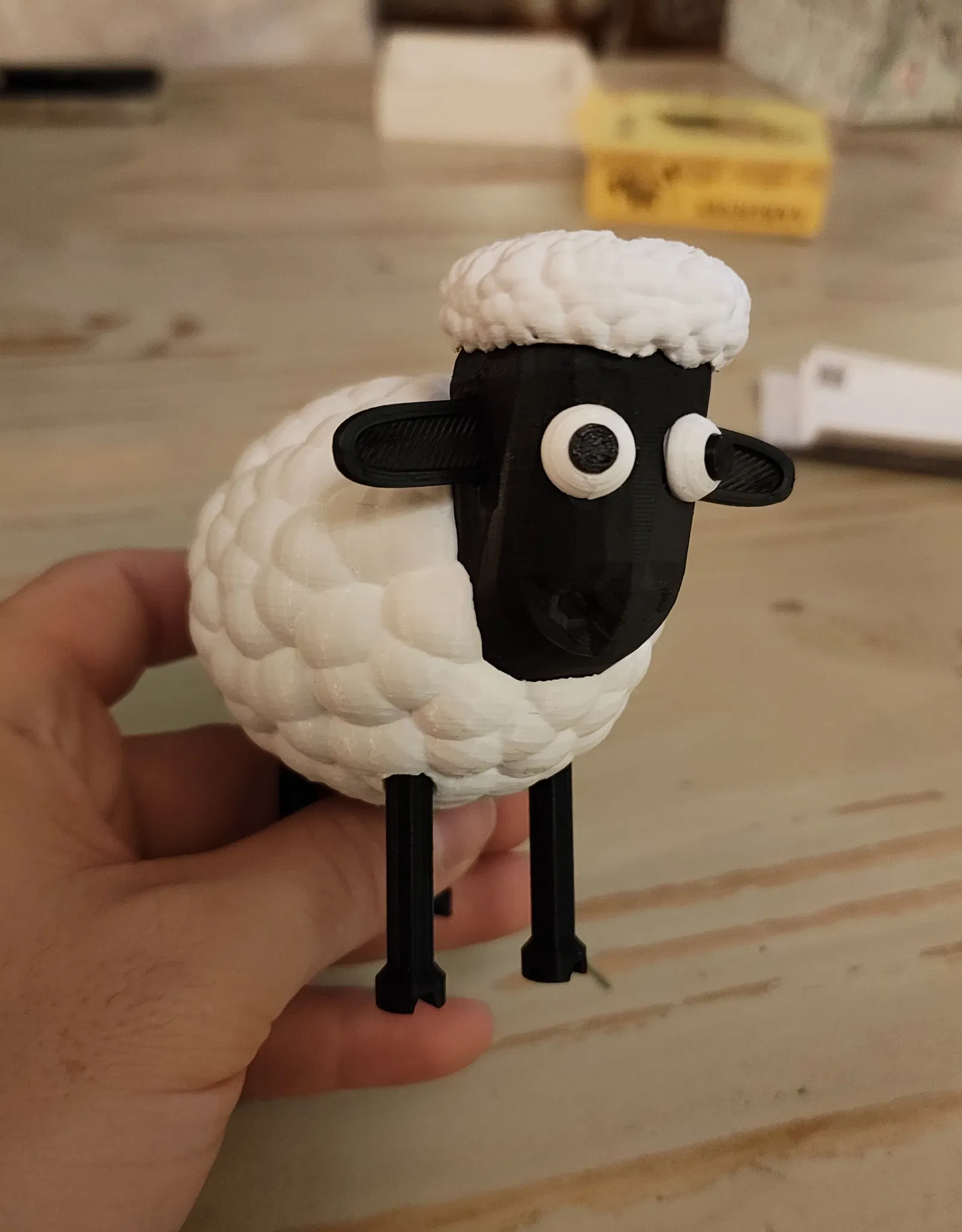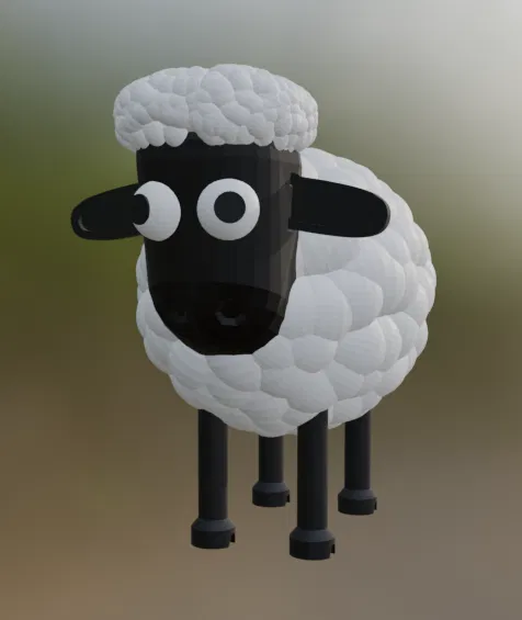 Mẫu cừu hoạt hình cute, phong cách Shaun the Sheep, thiết kế nhiều phần để in nhiều màu hoặc multi-material. Dễ lắp ráp dạng snap-fit, phù hợp làm đồ trang trí/figurine.