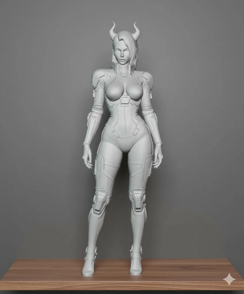 Mẫu “nữ quỷ” phong cách cyberpunk với tạo hình sexy và đặc điểm không có đuôi. Phù hợp để in 3D trưng bày, sưu tầm figure hoặc làm mô hình trang trí theo gu sci‑fi/cyberpunk.