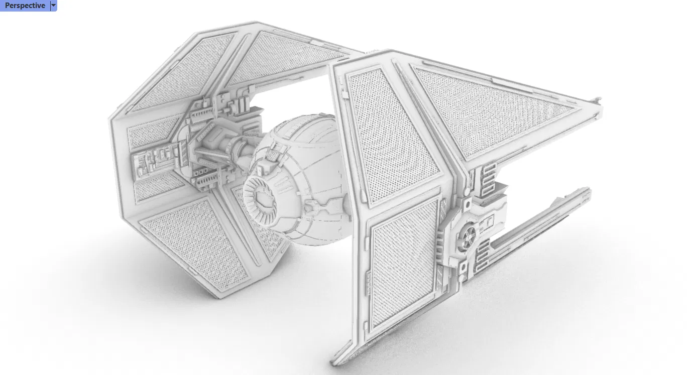 Mô hình 3D Tie Interceptor trong vũ trụ Star Wars, phù hợp để tải về và in 3D trưng bày hoặc sưu tầm. Thích hợp cho các dự án fan Star Wars và mô hình không gian.