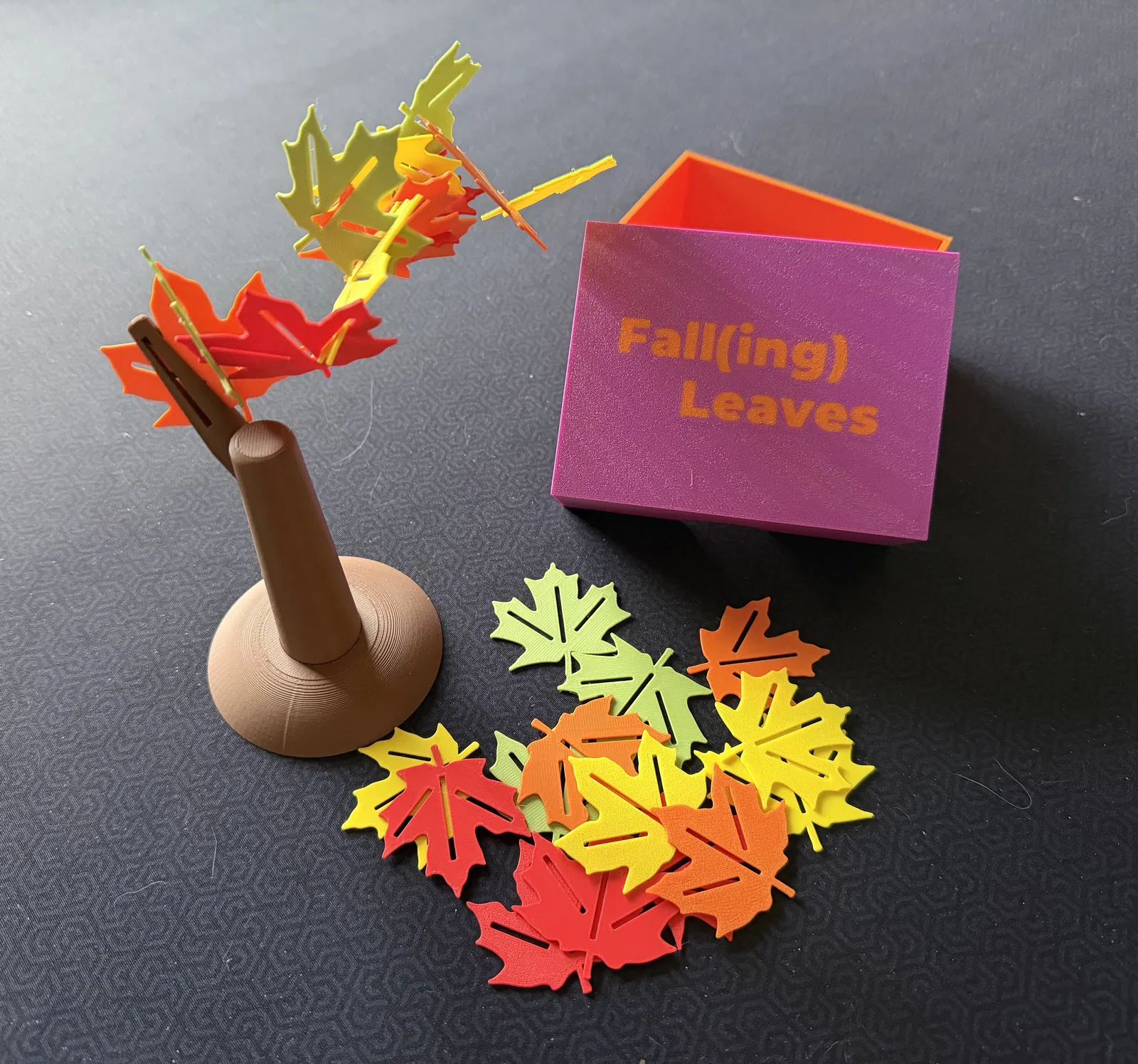 Bạn mê lá mùa thu hay cảnh lá rơi? Fall(ing) Leaves là game thăng bằng cho 1–4 người: lần lượt đặt từng chiếc lá lên cây, chỉ dùng một tay. Chỉ cần một lá rơi là có thể kéo cả chồng sập—ai trụ cuối cùng sẽ thắng.