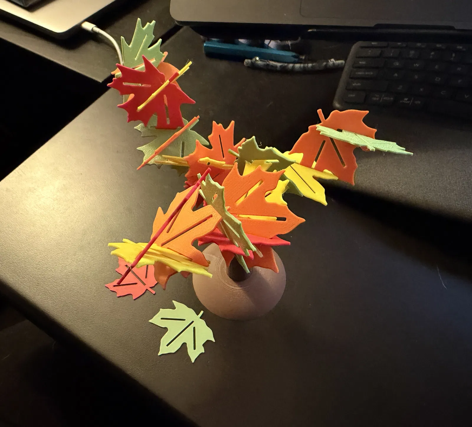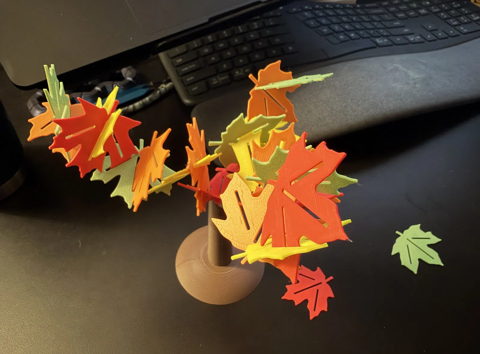 • Có 6 mẫu lá. Mình khuyên bắt đầu với 24 miếng. Bạn có thể in 4 bộ 6 chiếc, mỗi bộ một màu khác nhau như ví dụ của mình, hoặc tự phối theo ý bạn.
