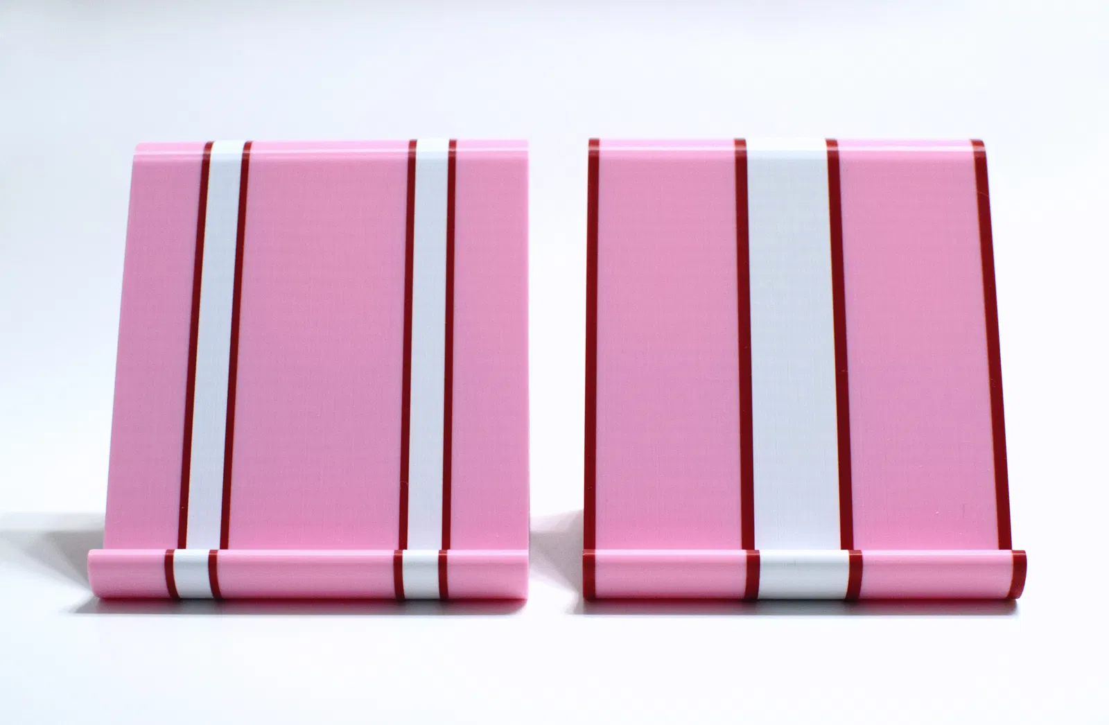 File này in rất dễ, kể cả người mới bắt đầu. Không cần AMS hay MMU. Nếu muốn làm sọc, bạn chỉ cần thêm các điểm tạm dừng (pause) trong slicer theo họa tiết bạn thích rồi thay filament. File này cũng có thể in một màu. Mẫu được đặt một mặt nằm trên build plate nên không cần supports. Điện thoại có thể đặt ngang hoặc dọc trên giá đỡ. Một chiếc giá đỡ điện thoại chắc chắn, bền bỉ, dùng được nhiều năm.