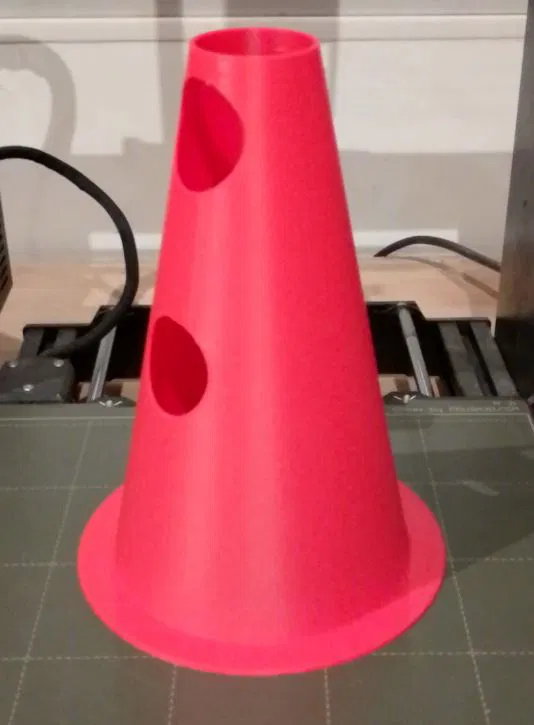 Mẫu cone có lỗ hỗ trợ canine rehabilitation, giúp chó tập vượt chướng ngại để hỗ trợ cải thiện hip dysplasia. Dùng kèm cán chổi đường kính tối đa 30 cm làm rào. Có bản mỏng hơn tối ưu thời gian in, dùng cho rollerblading slalom.