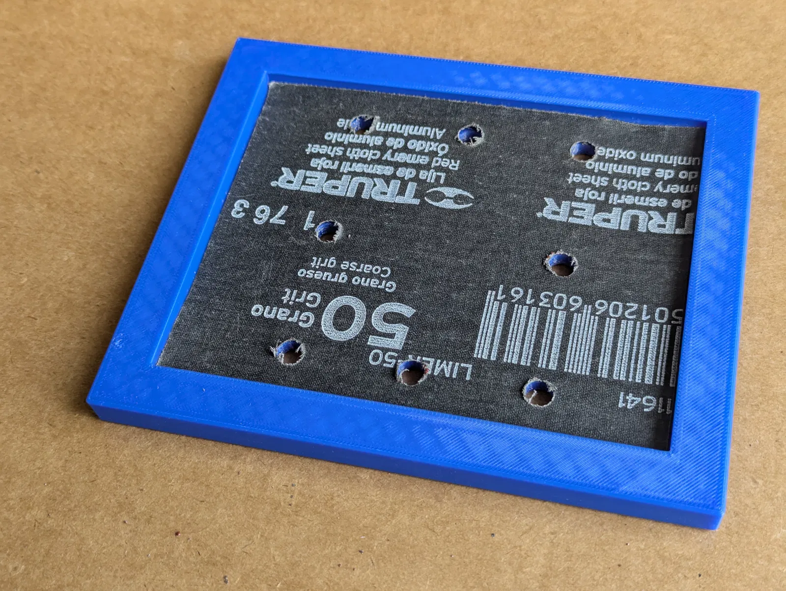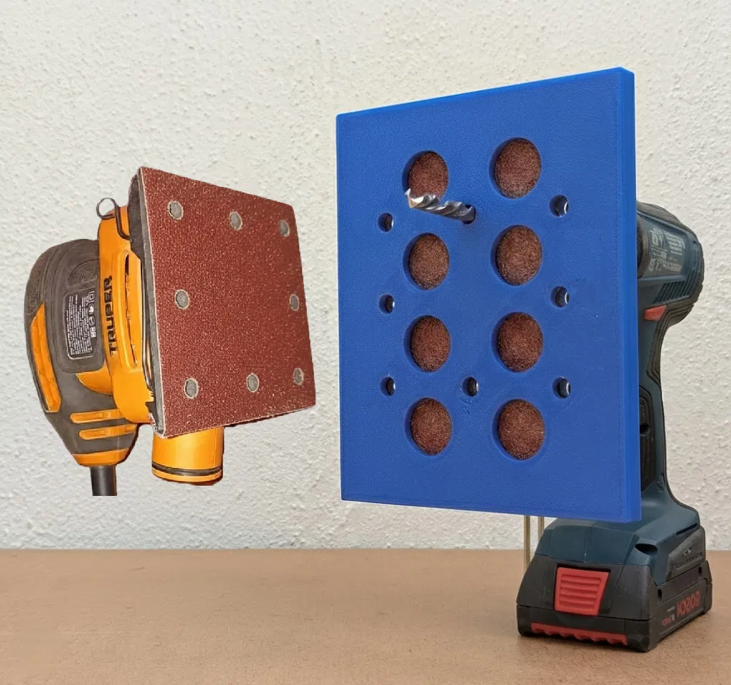 Model gồm 2 phần (Cover và Base) giúp bạn tự cắt và khoan lỗ giấy nhám đúng chuẩn cho máy chà nhám Truper 1/4. Chỉ cần vẽ viền, cắt theo dấu rồi khoan theo lỗ định vị (khuyến nghị mũi 5/16).