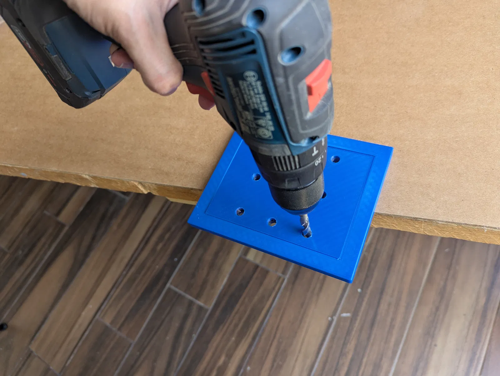 5 - Khoan xuyên qua giấy nhám theo các lỗ trên cover; khuyến nghị dùng mũi khoan 5/16