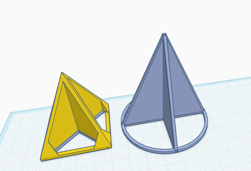Mô hình kim tự tháp (pyramid) và hình nón (cone) 3D. Dễ in, bền. Có hiển thị chiều cao, đáy và các cạnh/đường biên khác. Phù hợp làm đồ dùng dạy học cho các tiết Toán và Hình học. Kích thước (phóng đại 100%): Pyramid 40x40x46, Cone 60x60x64.