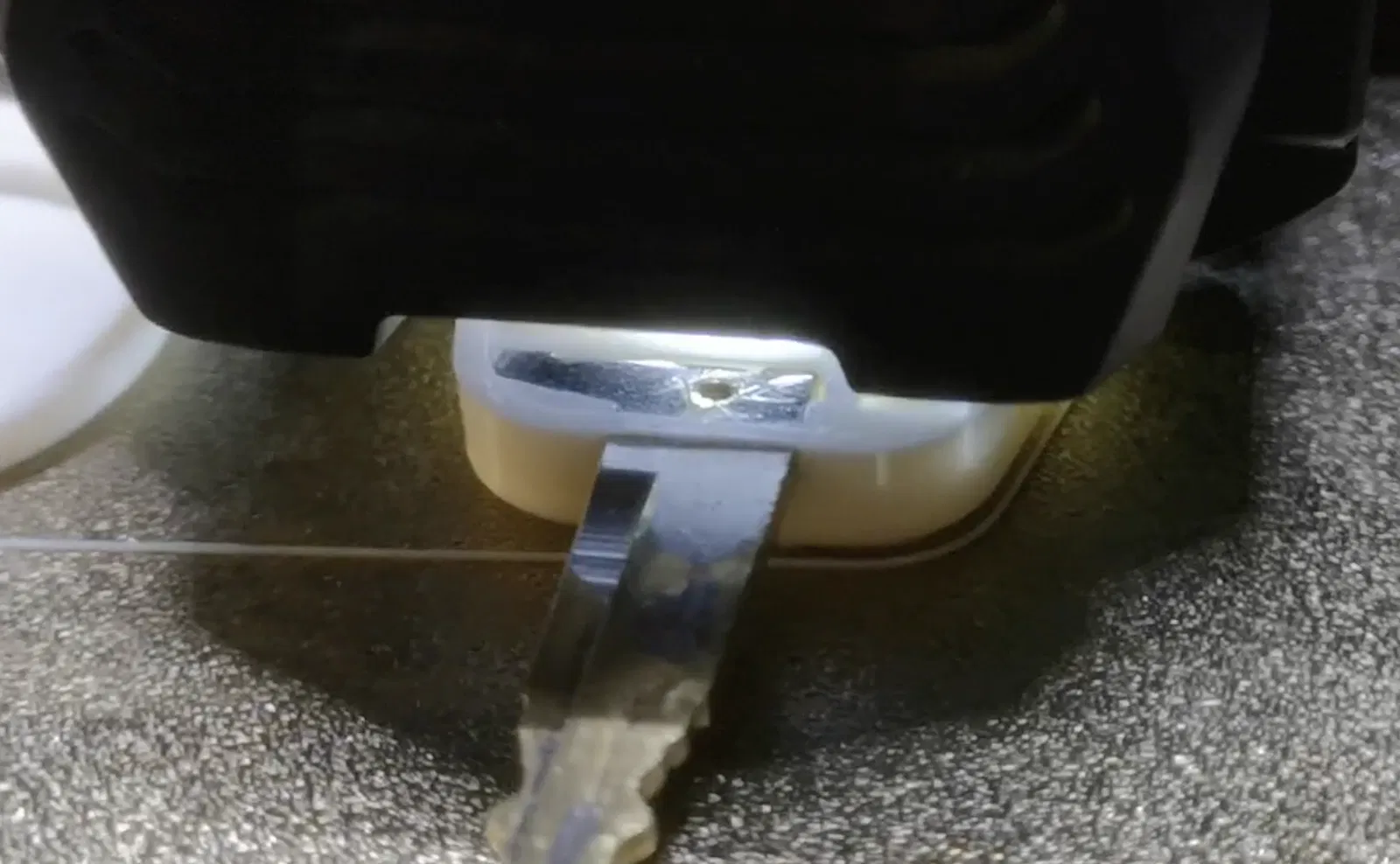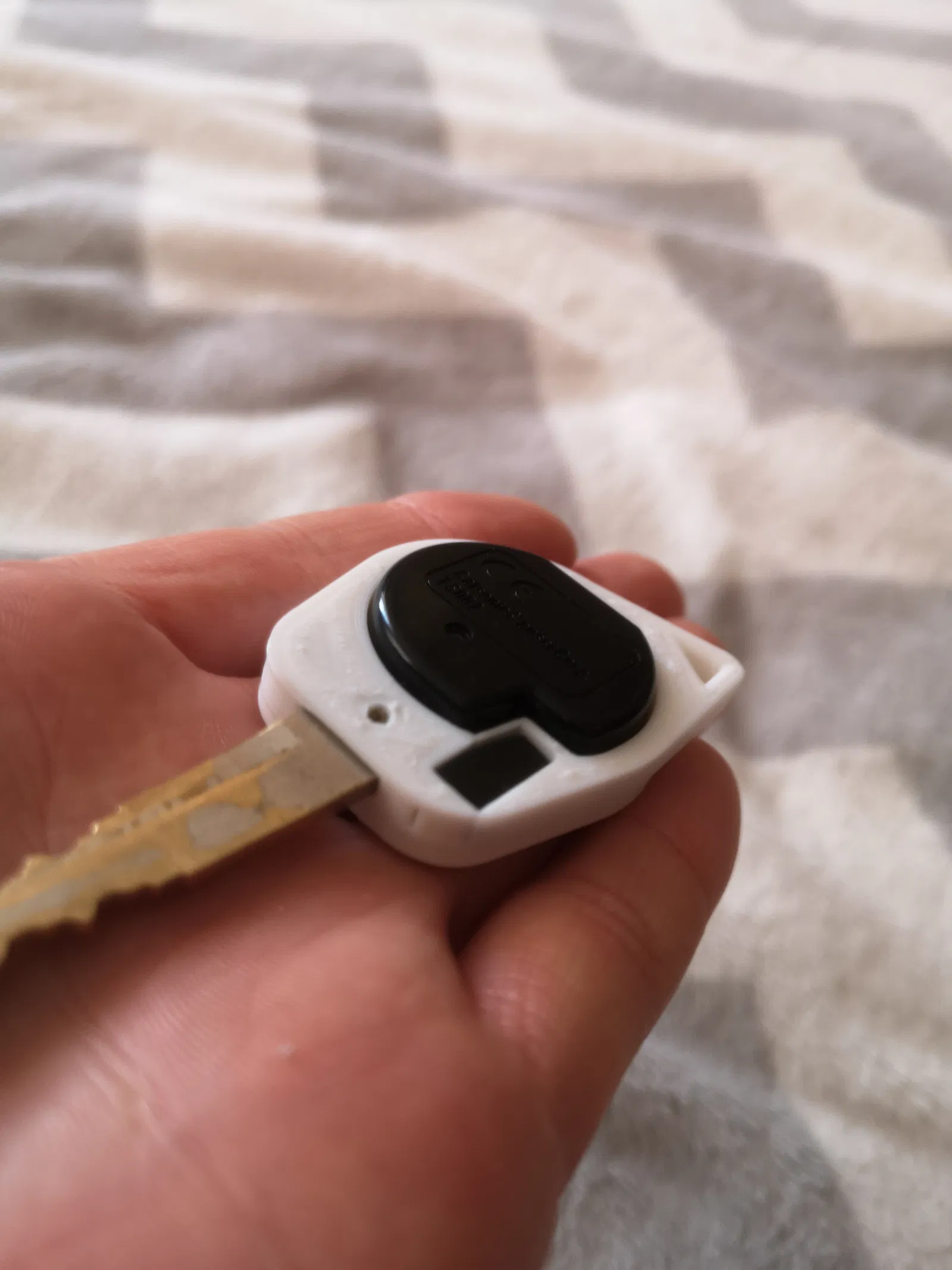 Khi slicing, chèn lệnh dừng (stop) ở lớp cuối của ngăn chứa chìa (key base compartment). Khi in tới đoạn này và máy dừng, hãy đặt phần chìa kim loại vào, mặt trên của chìa đã được dán keo thỏi (build platform glue stick) cho bám. Nếu bị chặt quá thì có thể hơ nóng nhẹ bằng bật lửa trước khi đưa vào.