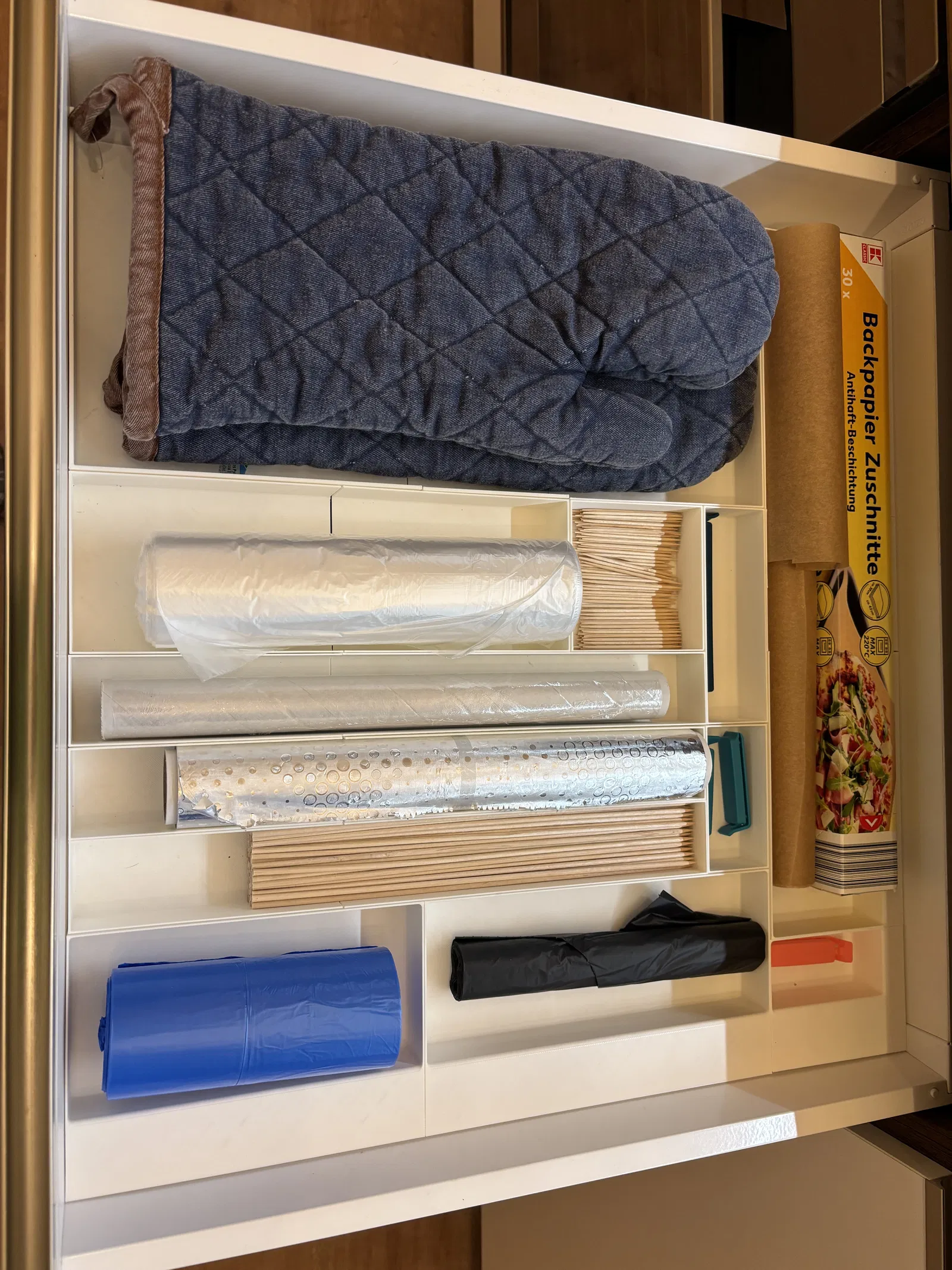 Đây là một mẫu organizer ngăn kéo bếp tùy biến khác của mình, tương thích gridfinity, dùng để đựng nhiều món phụ kiện lặt vặt trong bếp. Mẫu này được chỉnh cho ngăn kéo 50CM của BLUM (50 – bề ngang sử dụng được giữa hai phần vòm/arched).
