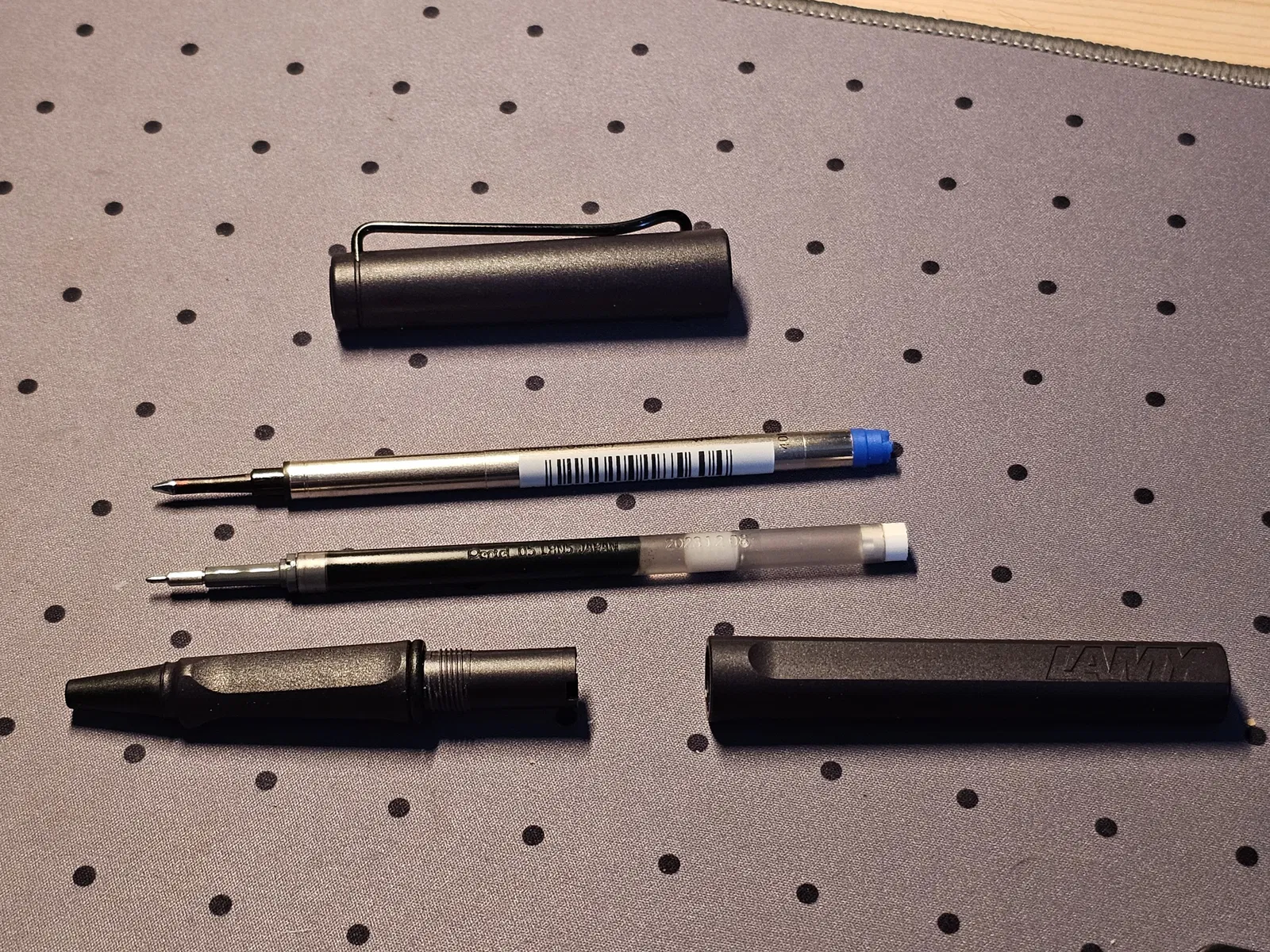 Đây là một adapter cho phép ruột bút Pentel EnerGel LRN5 dùng được trong bút LAMY Safari. Khi lắp trong thân bút thì độ khít hơi lỏng một chút, nhưng bút vẫn vặn/đóng lại bình thường và viết không gặp vấn đề gì.