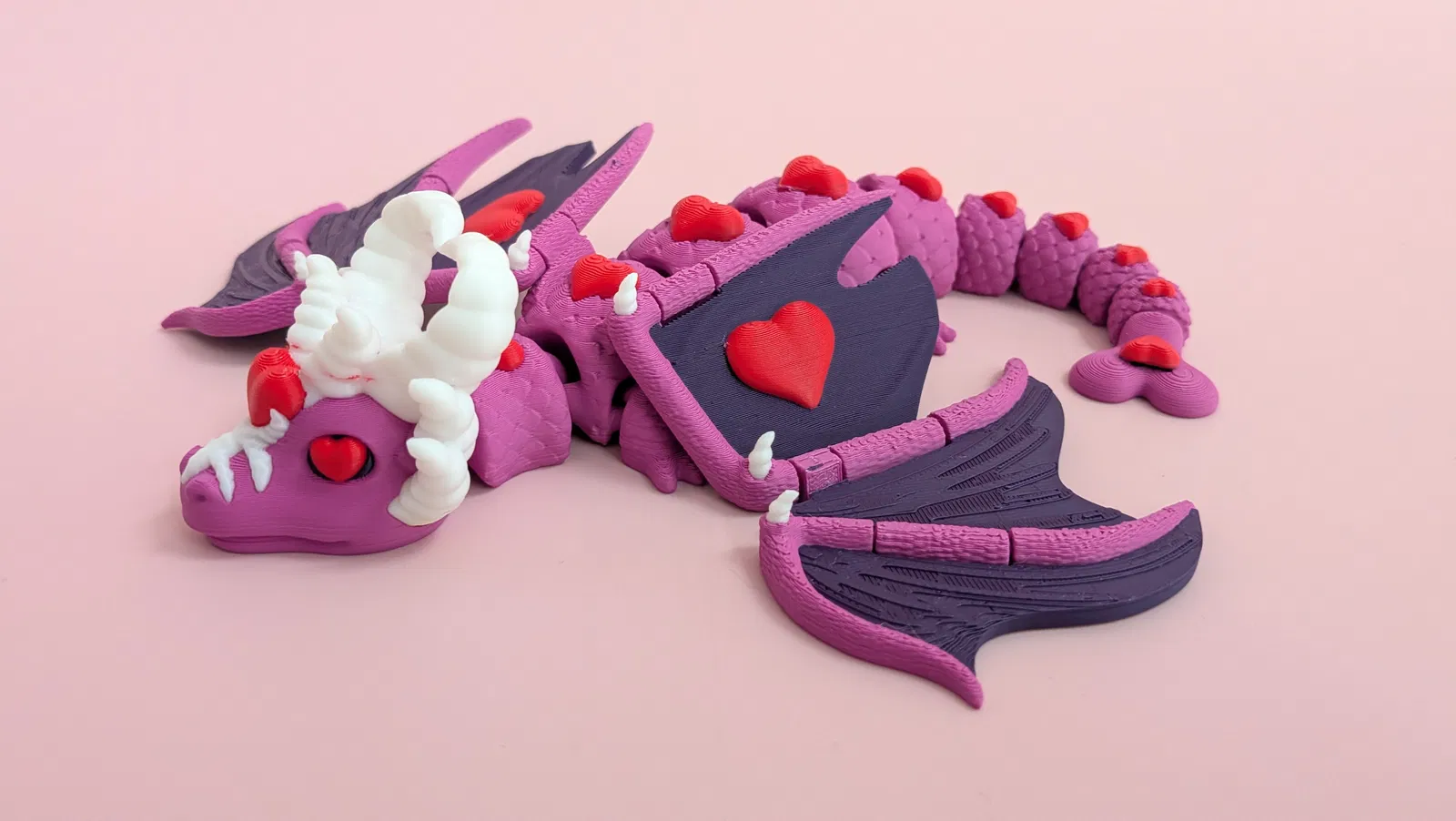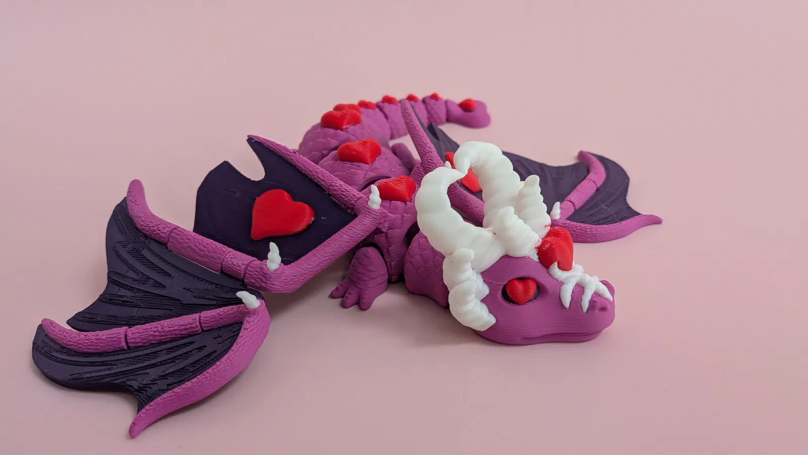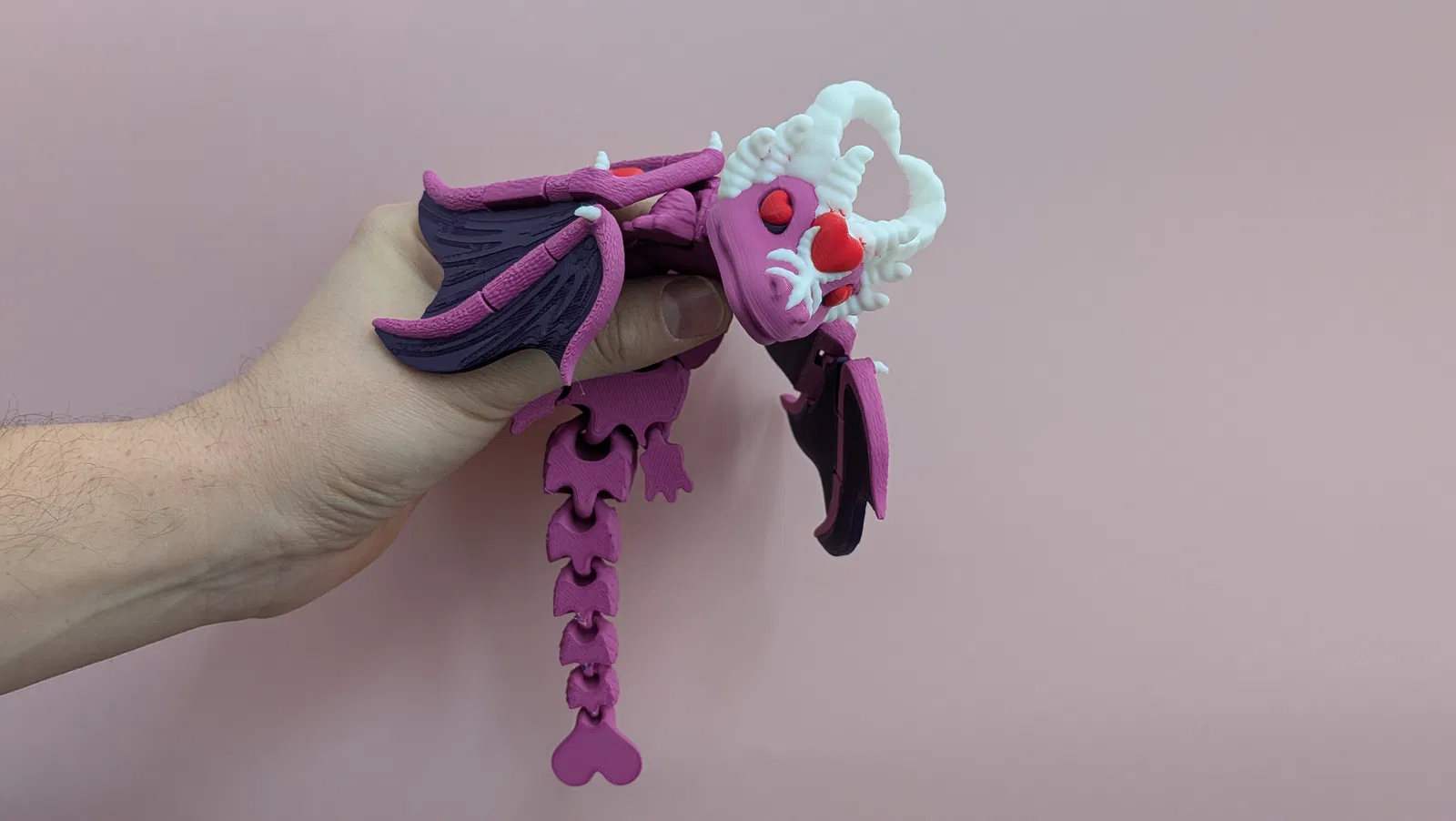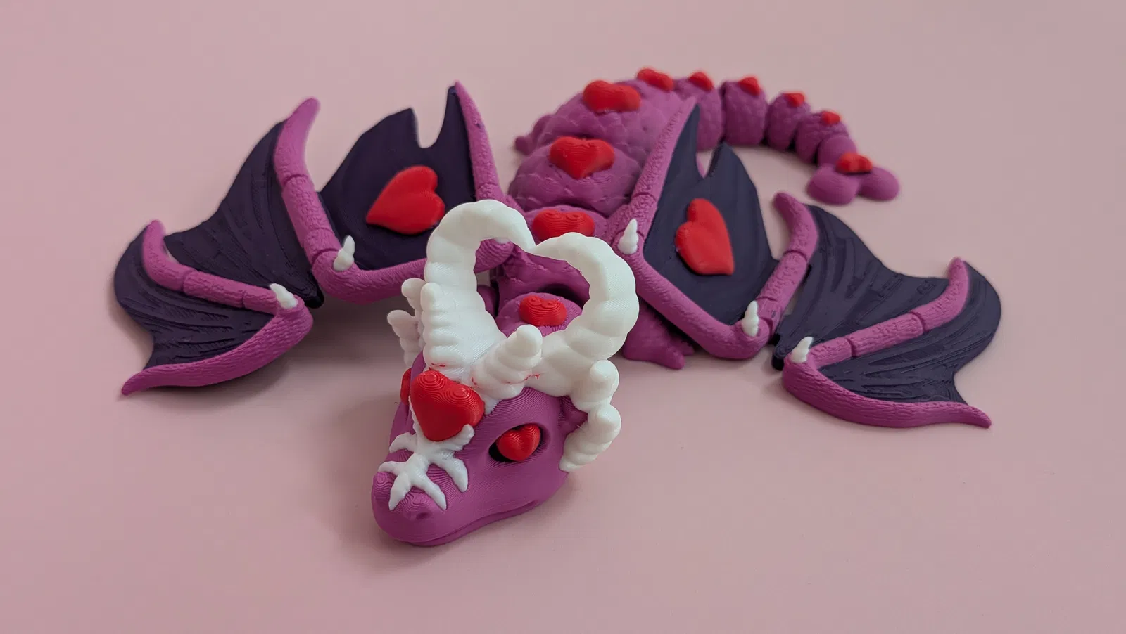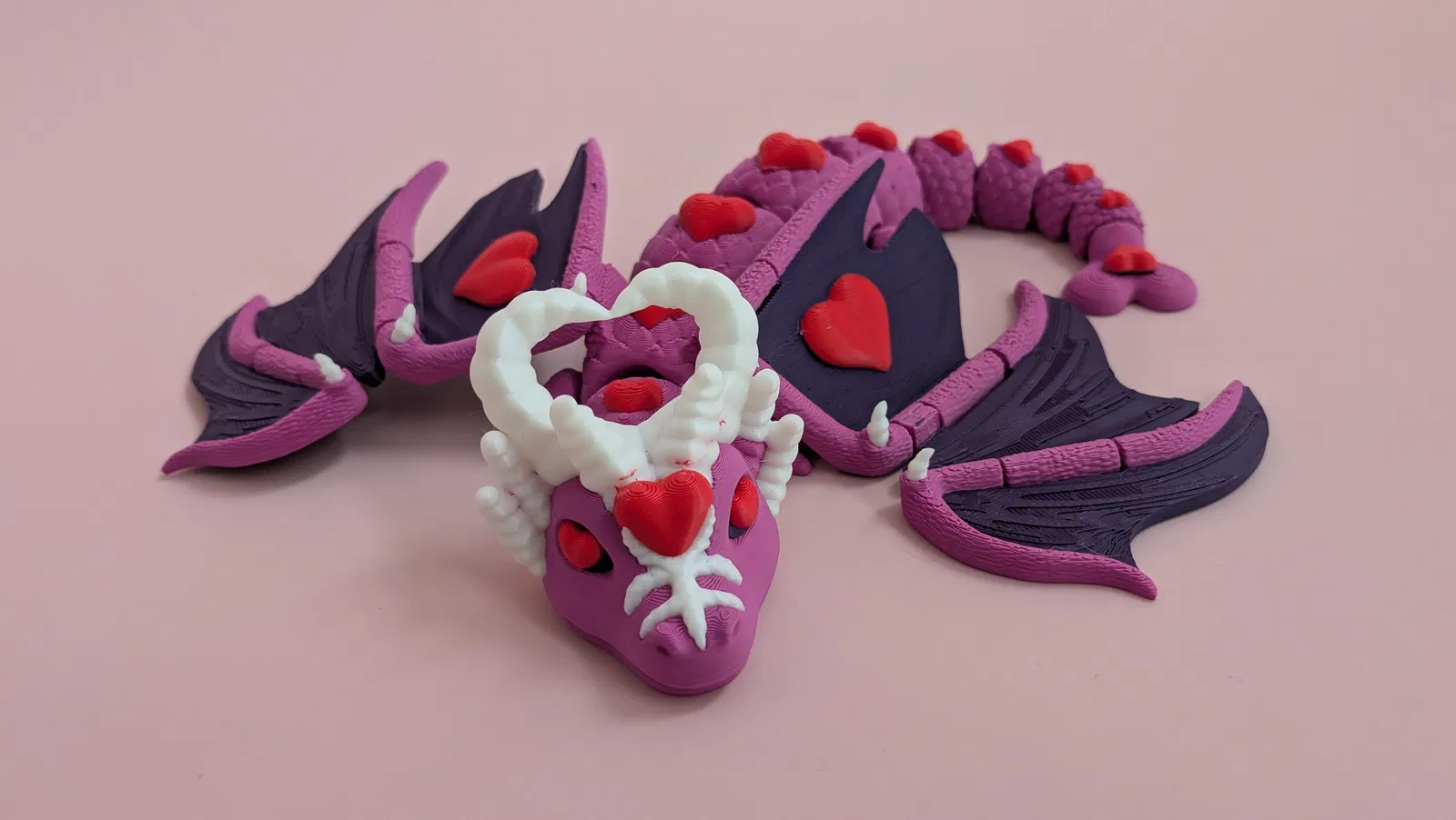 Elder Valentine’s Dragon là rồng trưởng thành fully articulated, phủ chi tiết trái tim và texture đẹp mắt. Khớp mượt để fidget hoặc trưng bày, hợp làm quà Valentine. In đẹp nhất ở 0.2 mm; multi-color càng nổi bật.
